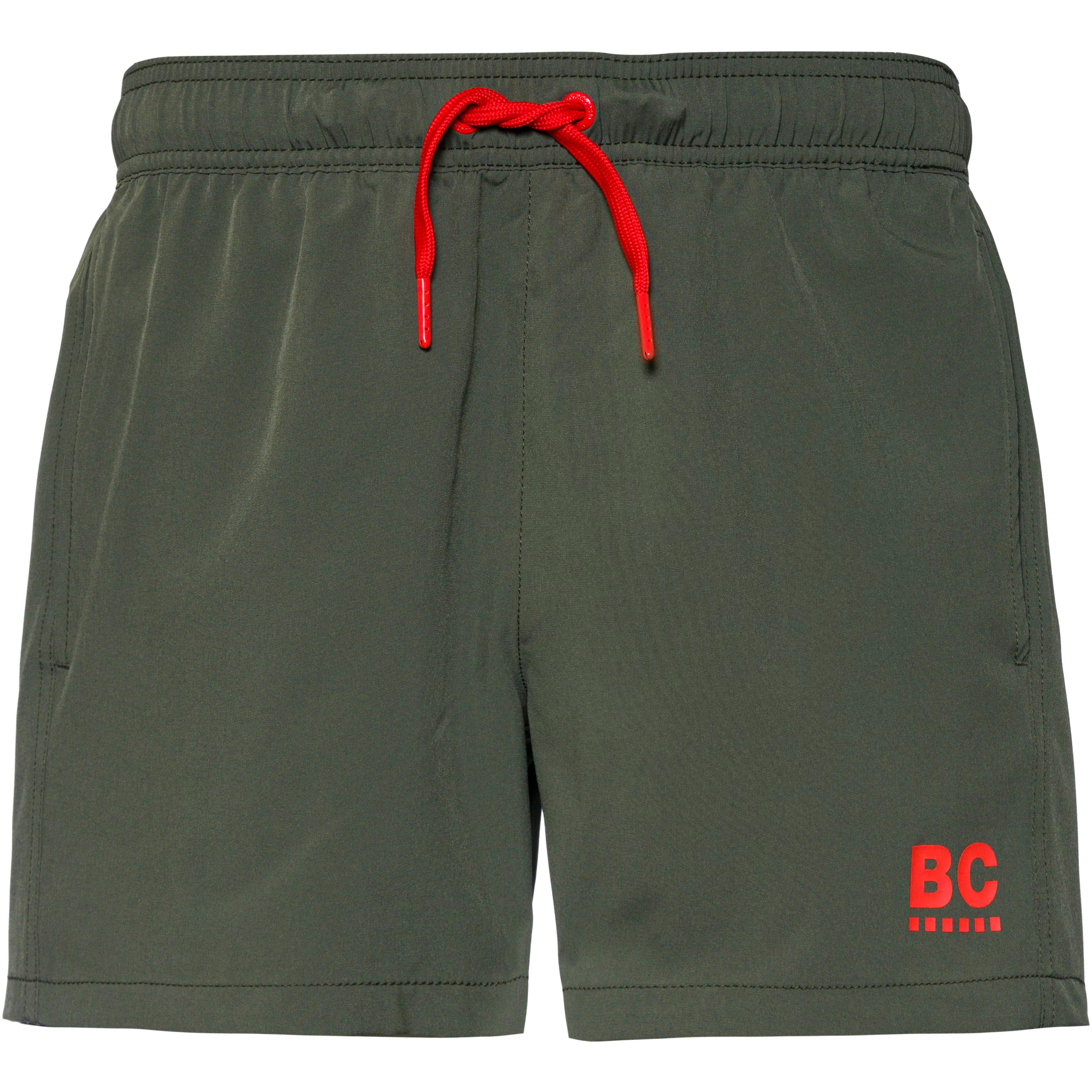Badehose aus schnelltrocknendem Stretchgewebe; weitenregulierbarer Elastikbund mit integriertem Kordelzug; seitliche Eingriffstaschen; 1 Gesäßtasche mit Klettverschluss und Wasserablauföse; Innenslip aus Meshgewebe; Obermaterial 92% Polyester, 8% Elastan, Futter 100% Polyester.