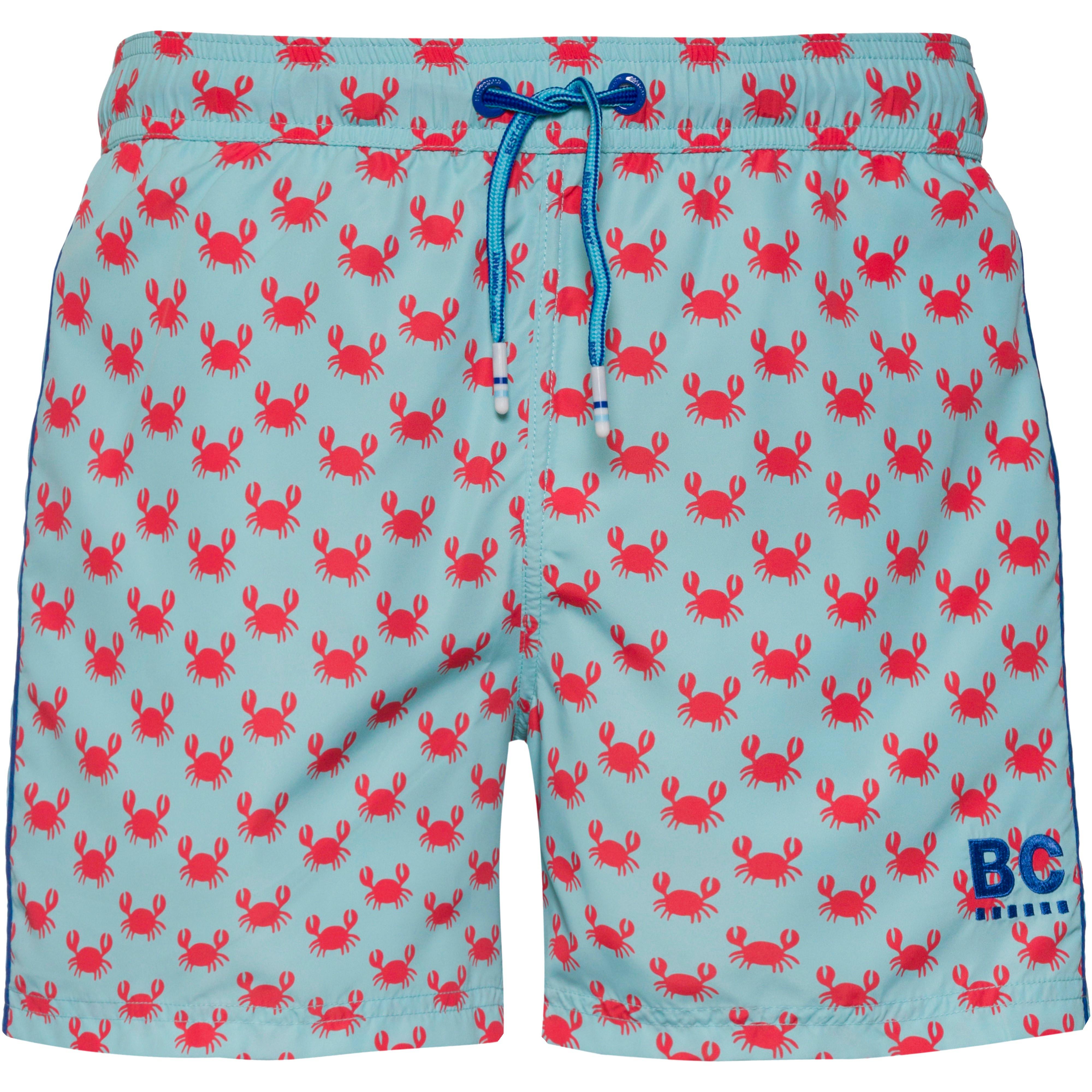 Bunte Badeshorts mit integriertem Slip aus Meshgewebe; weitenregulierbarer Elastikbund mit integriertem Kordelzug; seitliche Eingriffstaschen; 1 Gesäßtasche mit Klettverschluss und Wasserablauföse; Obermaterial 100% Polyester, Futter 87% Polyester, 13% Elastan.