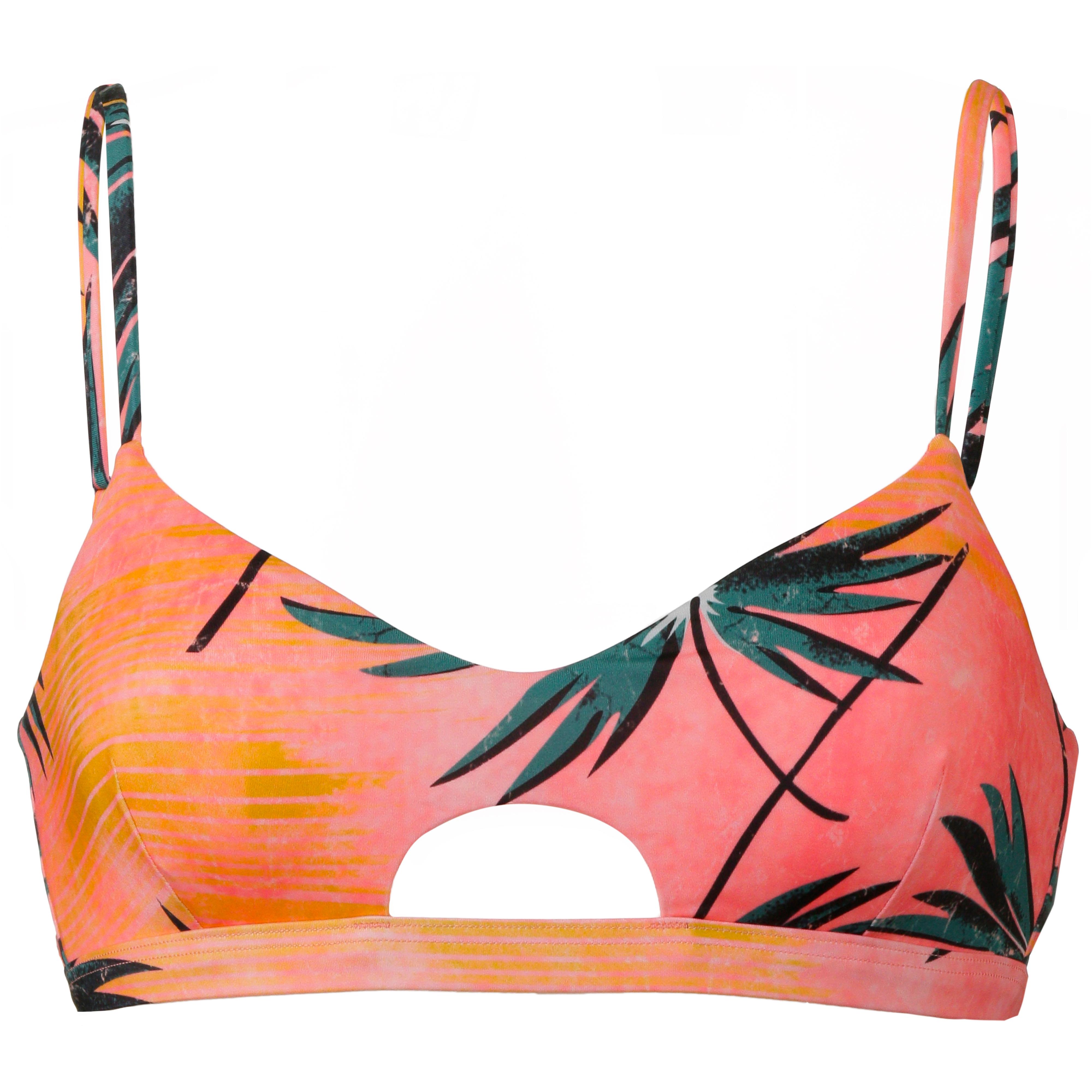Billabong PALM DAZE CROP TANK. Bustier Bikini-Oberteil aus recycelten Materialien mit verstellbaren Trägern; UV-Schutz; Cut Out im Vorder- und Rückteil; elastisches Unterbrustband; Rückenverschluss mit Metallhaken; gefüttert; Allover-Print; Material 78% Polyamid, 22% Elastan; Futter 100% Polyester.