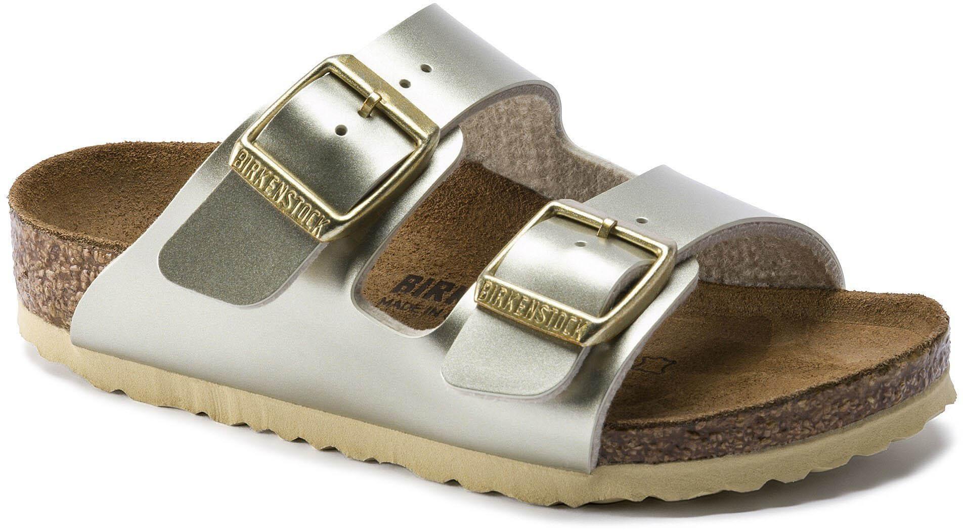 Schmale Sandalen mit anatomisch geformten Kork-Latex-Fußbett; strapazierfähiges Birko-Flor®-Material; 2 Riemen mit Dornschnallen; Made in Germany; Obermaterial aus Synthetik; Innensohle aus Mikrofaser; abriebfeste Außensohle.