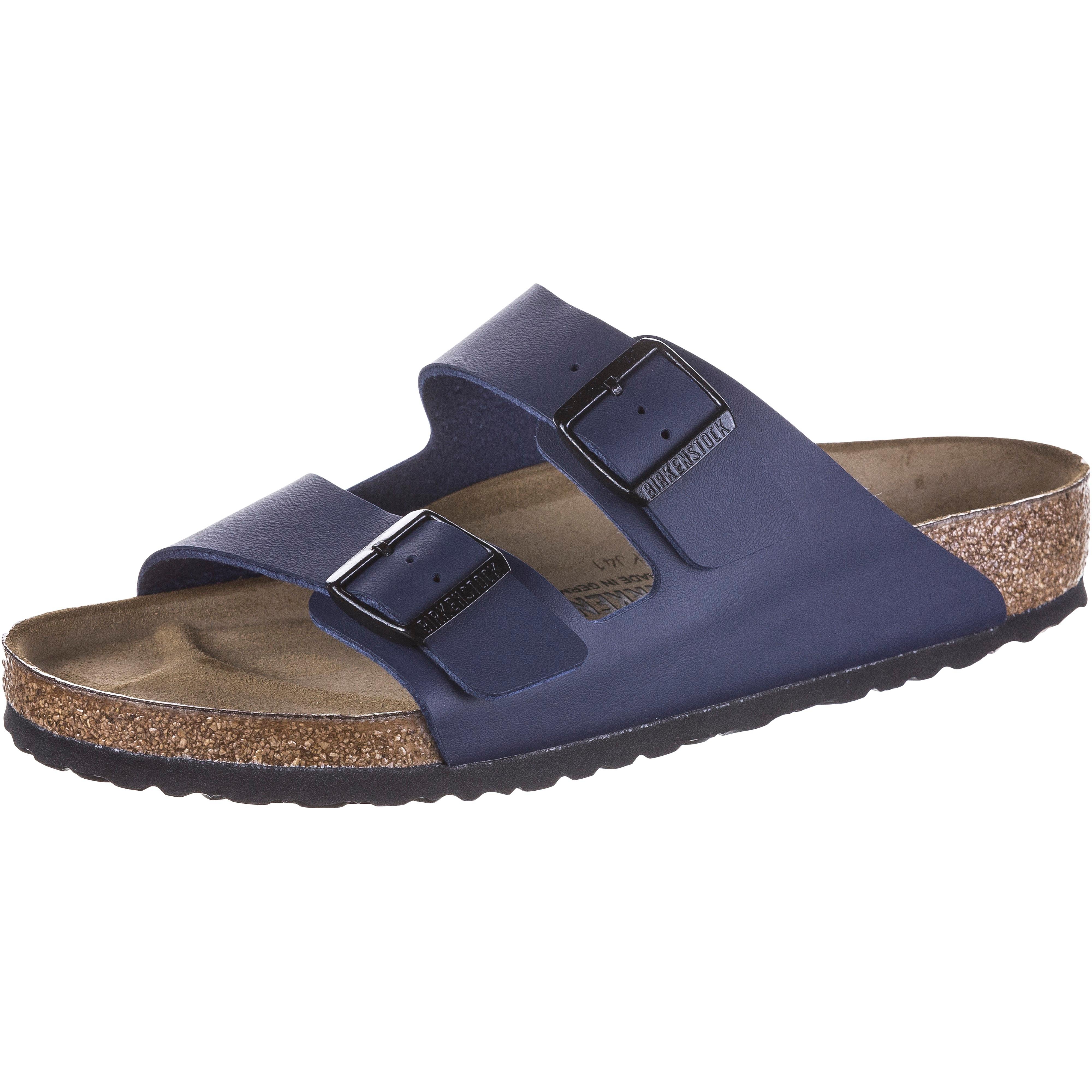 Der BIRKENSTOCK Arizona ist ein zeitloser Klassiker, der Komfort und Design miteinander verbindet. Seit Jahrzehnten begeistert diese Sandale mit ihrem schlichten, aber ikonischen Look und den zwei weitenverstellbaren Riemen. Das Obermaterial aus hochwertigem Birko-Flor®, einem hautfreundlichen und strapazierfähigen Synthetikmaterial, sorgt für Langlebigkeit und Pflegeleichtigkeit. Das Herzstück der Sandale ist das anatomisch geformte Kork-Latex-Fußbett, das sich optimal an die natürliche Form des Fußes anpasst und durch seine exzellenten Dämpfungseigenschaften ein unvergleichliches Tragegefühl bietet. Die atmungsaktive Leder-Decksohle sorgt für ein angenehmes Fußklima, selbst an warmen Tagen, während die EVA-Außensohle durch ihre Leichtigkeit und Elastizität Unebenheiten ausgleicht und für eine sanfte Abfederung bei jedem Schritt sorgt. Hergestellt in Deutschland, steht der Arizona für höchste Qualität und nachhaltige Materialien. Ob als Alltagsbegleiter oder entspannter Freizeitschuh – diese Sandale ist ein Must-have für alle, die Stil und Bequemlichkeit schätzen.
