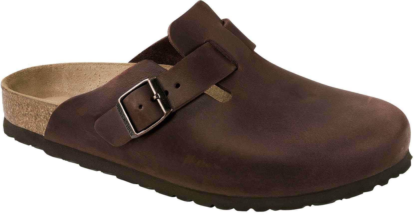 Sandalen in Clogs-Form mit geschlossener Fußspitze; Obermaterial aus besonders dickem, geöltem Nubukleder in offenkantiger Verarbeitung; mit verstellbarer Dornschnalle aus Metall; anatomisch geformtes Kork-Latex-Fußbett; Decksohle aus Veloursleder; EVA-Außensohle; Made in Germany.