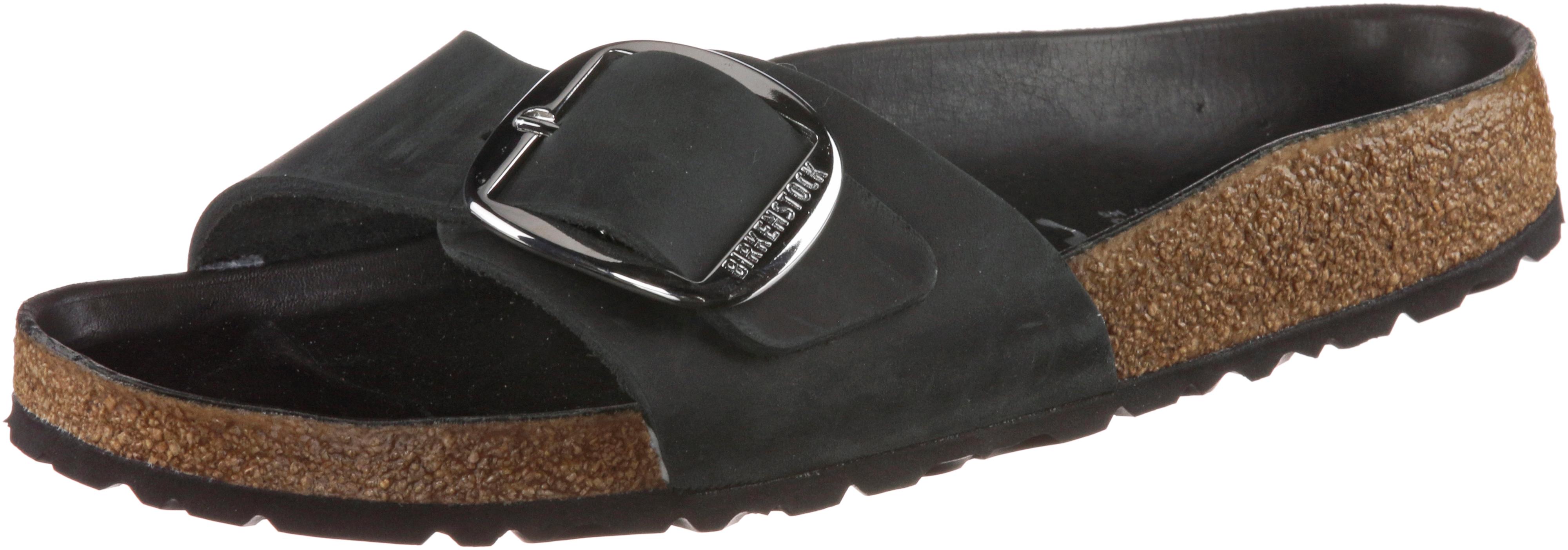 Birkenstock BIG BUCKLE. Sandalen mit verstellbarem Riemen aus Leder und mit Metallschnalle; anatomisch geformtes Fußbett aus Kork; Decksohle mit Überzug aus Piumato-Leder; rutschfeste Außensohle aus EVA; Weite: schmal.