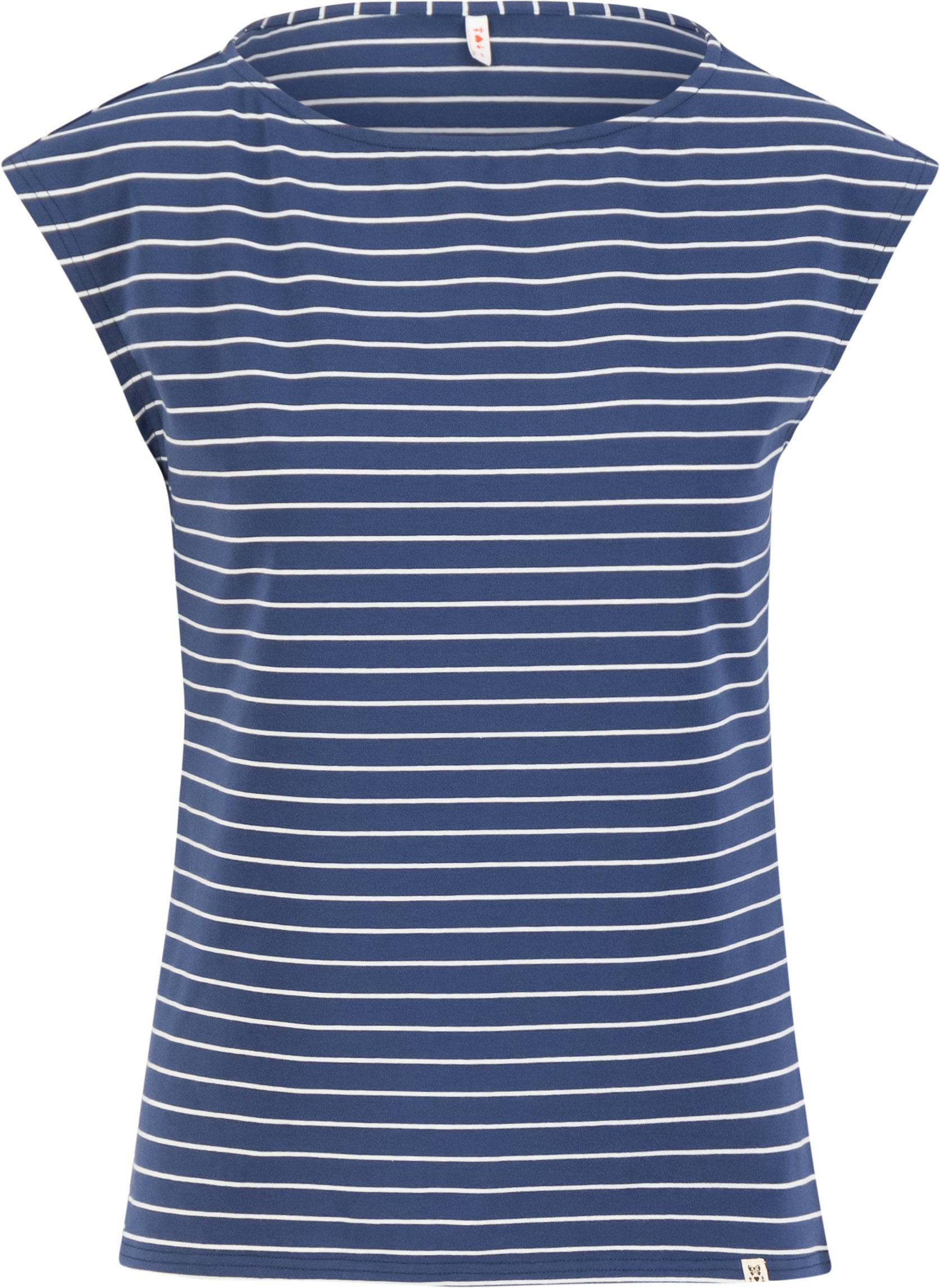 T-Shirt aus weichem Baumwoll-Jersey mit Stretchanteil; durchgehendes Streifenmuster; U-Boot-Ausschnitt; überschnittene Schultern; feminine Passform; Material 95% Baumwolle, 5% Elastan.