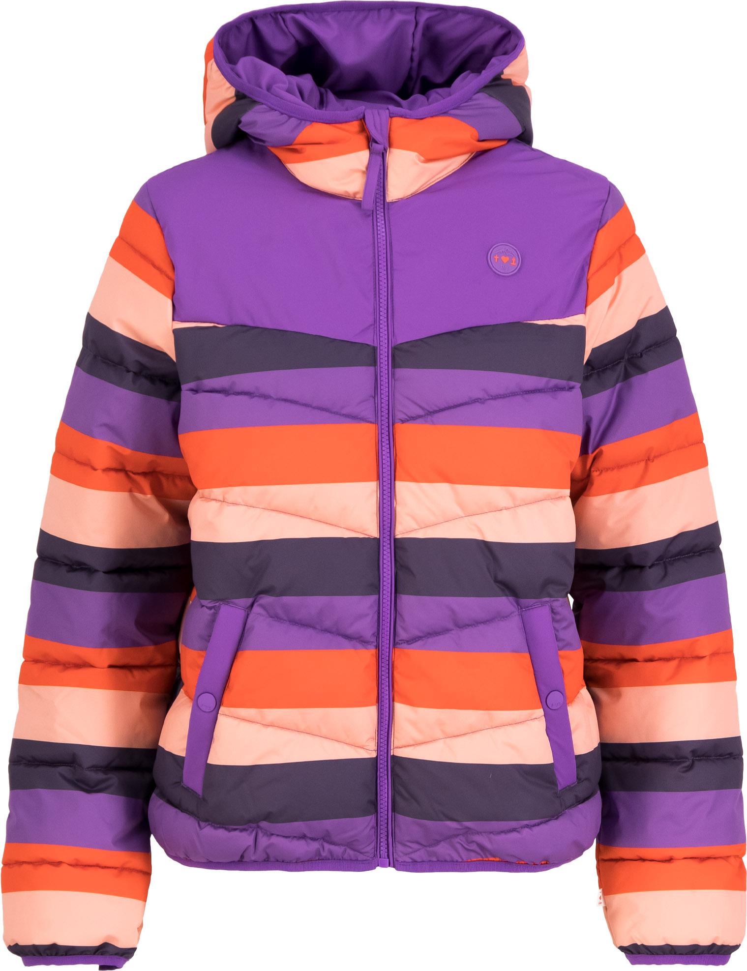 Bunte Steppjacke aus wasser- und winddichtem Material; Wassersäule: 2.000 mm; mit weicher und wärmender Sorona® Aura-Isolierung, welche zu 37% aus erneuerbaren pflanzlichen Rohstoffen besteht; geräumige Kapuze mit Kragen; Frontreißverschluss mit Kinnschutz; 2 Seitentaschen mit Druckknöpfen; Fair Wear Foundation; Obermaterial 100% Polyester (recycelt), Isolierung 63% Polyester, 37% Elastomultiester, Futter 100% Polyamid (recycelt).