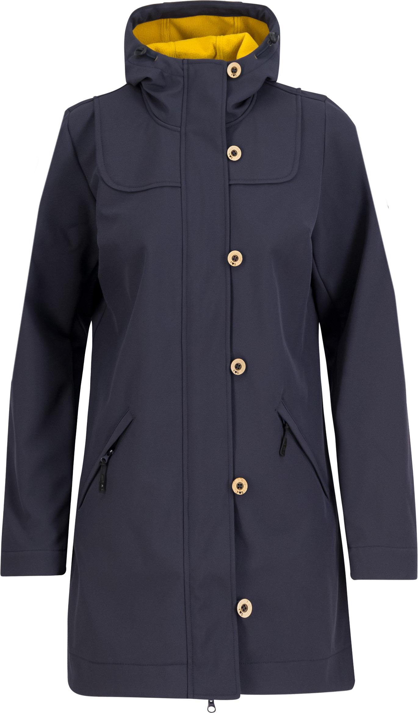 Softshellmantel aus wasser- und winddichtem Material; bunte Blumengrafik auf dem Rücken; Kapuze mit Gummizug und Stopper verstellbar; 2-Wege-Reißverschluss mit Kinnschutz; Windschutzleiste mit Kokosknöpfen; 2 seitliche Reißverschlusstaschen; weitenregulierbare Ärmelbündchen; wärmende Fleece-Innenseite; Wassersäule: 10.000 mm; Fair Wear Foundation; Obermaterial 90% Polyester (recycelt), 10% Elastan; Futter 100% Polyester (recycelt).