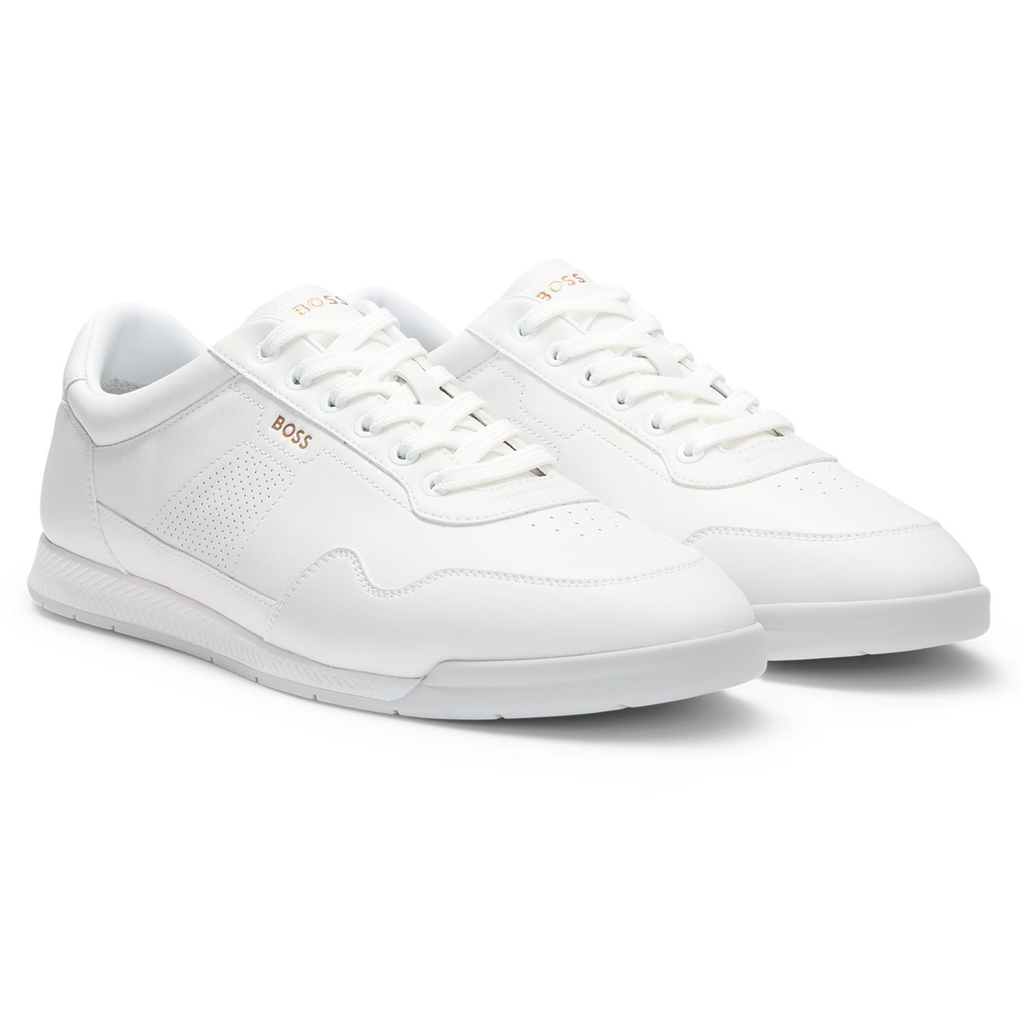 Sportlich elegante Sneaker für Herren von der Marke BOSS. Hochwertige Schnürschuhe aus echtem Leder mit markentypischen Logo Details.