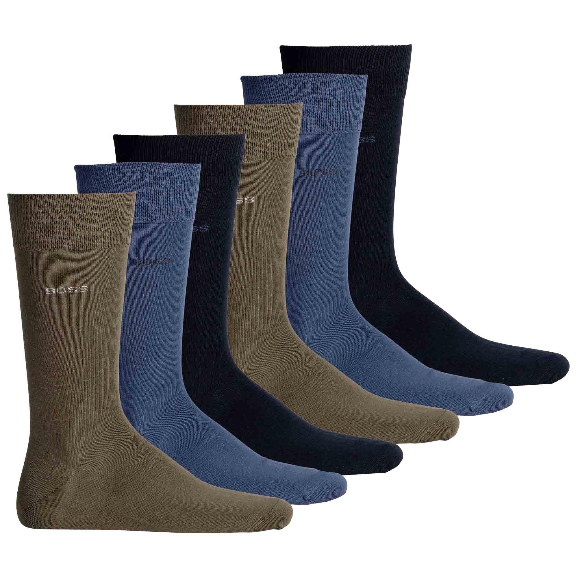 Sechs Paar mittelhohe Socken für Herren von der Marke BOSS. Mit dezentem Logo am Bund. Hoher Baumwollanteil für angenehmes Tragegefühl. Für den täglichen Bedarf.