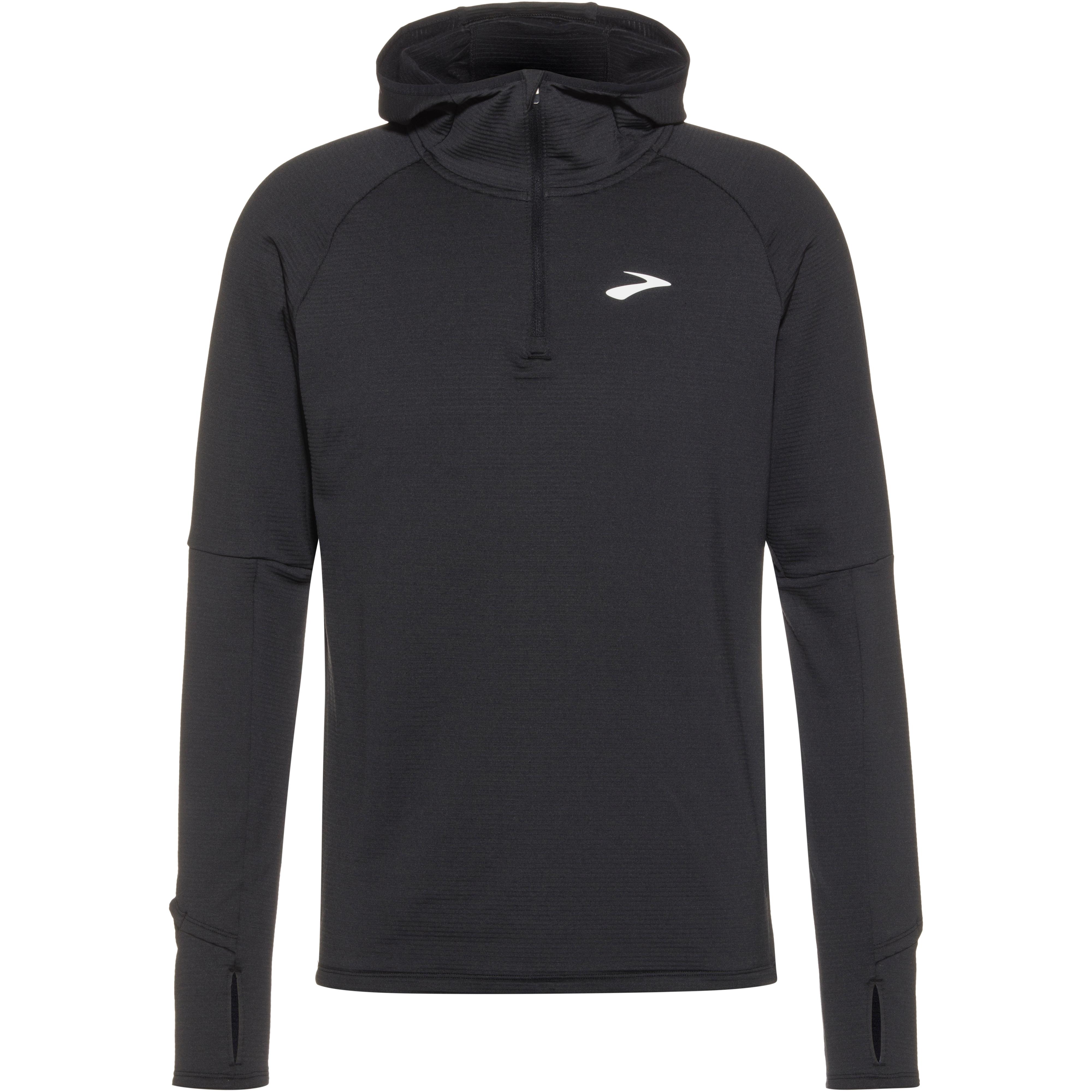 Warmhaltender Laufhoodie mit geruchshemmender und schweißableitenden Eigenschaften; feste Kapuze mit elastischer Einfasskante; halblanger Frontreißverschluss mit Kinnschutz; hochabschließender Kragen; Raglanärmel für optimale Bewegungsfreiheit; 1 seitliche Reißverschlusstasche; Armabschlüsse mit Sichtfenster und Daumenschlaufen; verstaubares Design; umweltfreundlich produziertes bluesign® product; Material 91% Polyester, 9% Elastan.