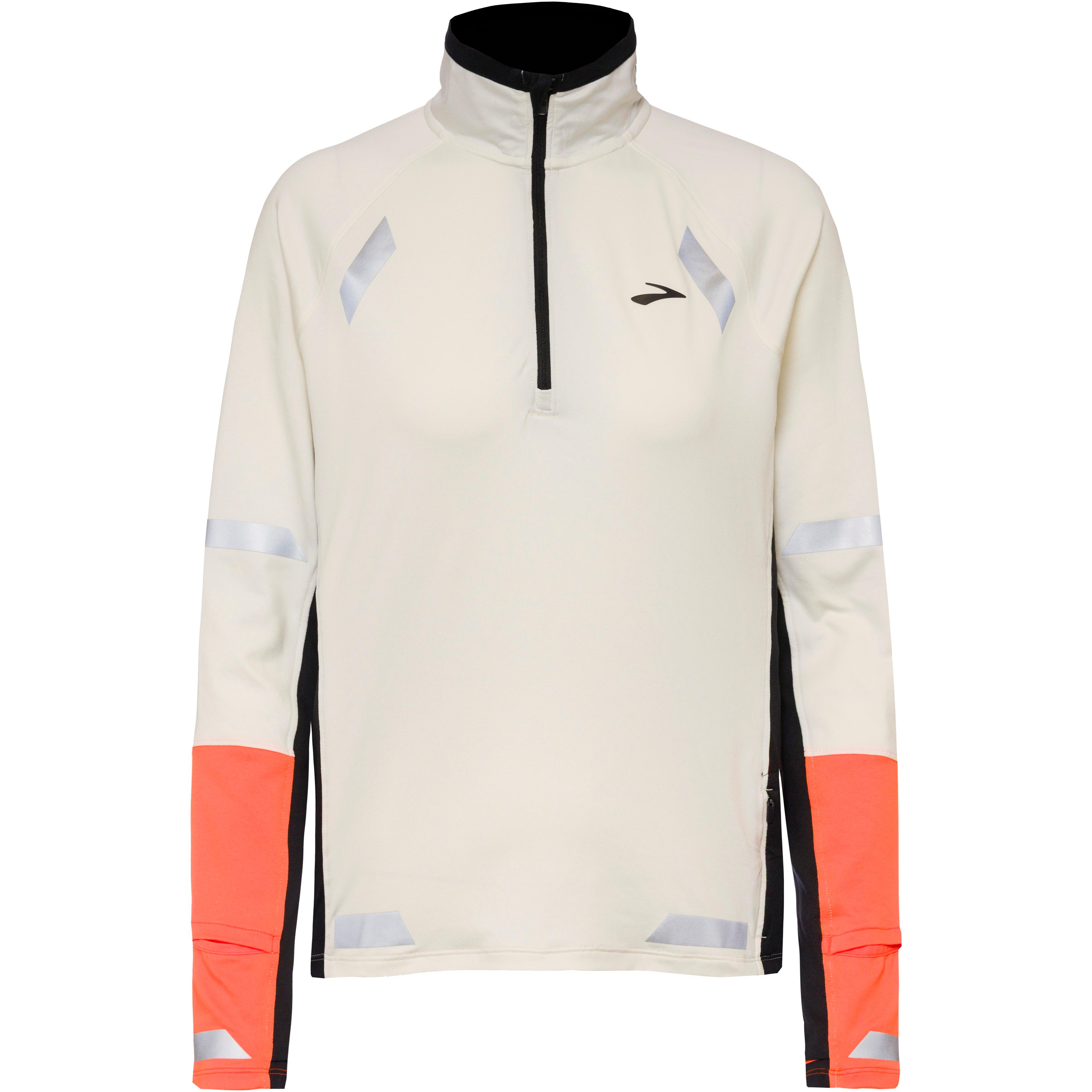 Langärmeliges Funktionsshirt für Damen, aus elastischem Gewebe, mit reflektierenden Elemente; Stehkragen mit Kinnschutz; der kurze Frontreißverschluss erleichtert das An- und Ausziehen; die Raglanärmel sorgen für optimale Bewegungsfreiheit bei allen Aktivitäten; Armabschlüsse mit Daumenlöchern; Sichtfenster für Armbanduhren; 1 Reißverschlusstasche in der Seitennaht; Material 93% Polyester (recycelt), 7% Elastan.