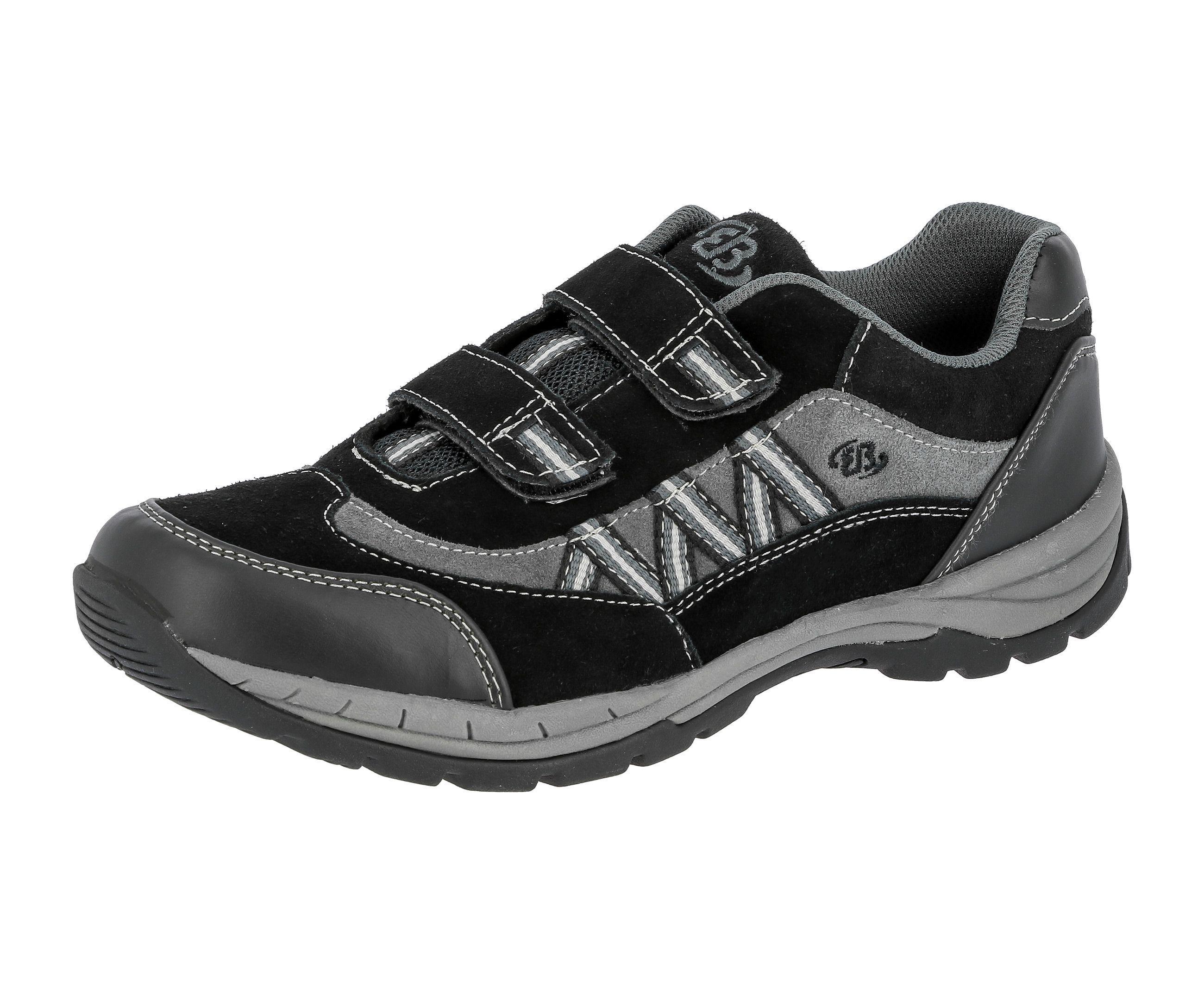 Formvollendet und bequem zeigt sich der Bequemschuh Man Comfort V des Herstellers Brütting. Die bequeme Innenausstattung aus Leder lädt zum Wohlfühlen ein. Um den Tragekomfort auch an langen Tagen zu sichern, wurde die Innensohle ebenfalls aus Leder hergestellt. Mit ihrer atmungsaktiven Eigenschaft sorgt sie für ein optimales Klima im Schuh. Die Nutzung eigener Einlagen ist kein Problem, denn das Wechselfußbett kann problemlos herausgenommen und ausgetauscht werden. Der individuell verstellbare Klettverschluss ermöglicht einen einfachen Einstieg und sorgt für den perfekten Sitz am Fuß. Synthetik-Besätze sorgen für noch mehr Flexibilität und Komfort. Zu diesem Allrounder gehört auch die hochwertige und dämpfungsaktive CME-Laufsohle, die das angenehme Tragegefühl bei jedem Schritt unterstützt. Kombiniert mit einer Sporthose und einem lockeren Shirt ist im Nu ein tolles Outfit zusammengestellt! Wer einen tollen Schuh für Alltag und Freizeit sucht, kommt an diesem Klettschuh von Brütting nicht vorbei!