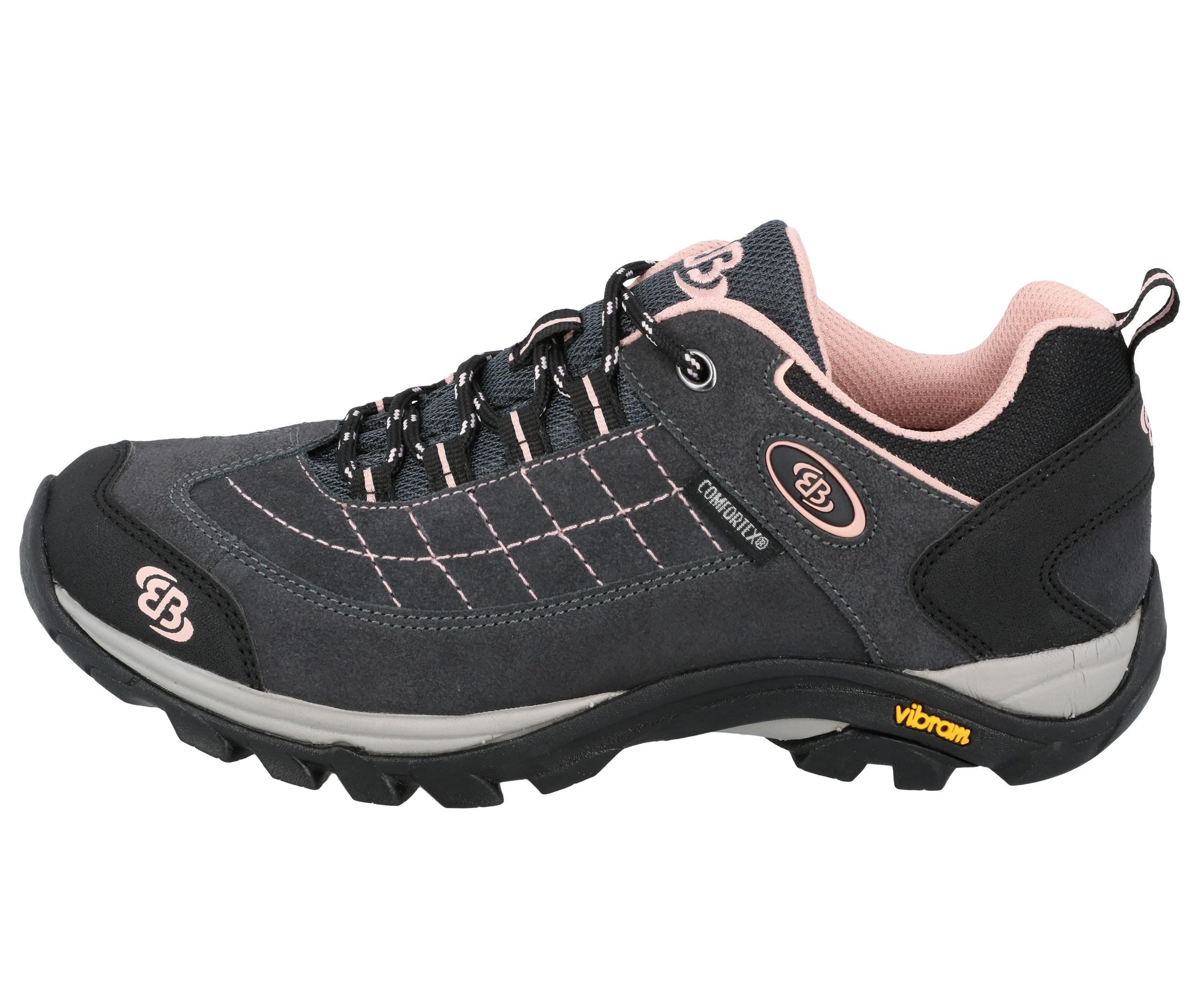 Brütting stellt bei diesem Trekkingschuh wieder einmal Talent in den Bereichen Design und Komfort unter Beweis! Optisch überzeugt der modische Damenschuh schon auf den ersten Blick durch das Obermaterial aus Nylon. Das bequeme Material aus Textil lädt zum Wohlfühlen ein. Um für individuelle Anforderungen perfekt gewappnet zu sein, ist der Schuh mit einem praktischen Wechselfußbett ausgestattet. Es kann mit wenigen Handgriffen herausgenommen und gegen eigene Einlagen ausgetauscht werden. In Puncto Funktionalität bietet dieser Damenschuh mit seiner praktischen Schnürung einen echten Mehrwert. Die Schnürung sieht nicht nur modisch aus, sondern sorgt auch für viel Komfort und einen angenehmen Sitz. Für guten Tragekomfort und den nötigen Halt sorgt zudem die profilierte Laufsohle aus Gummi. Zu engen Röhrenjeans und einem Langarmshirt oder zu einer Leggings mit langem Pullover: Den Outfit-Varianten sind mit diesem Allrounder nahezu keine Grenzen gesetzt. Ob für den nächsten Ausflug mit der Familie oder einer langen Wanderung mit dem Partner: der Trekkingschuh von Brütting bereichert den Schuhschrank aktiver Frauen und begleitet sie überall hin!