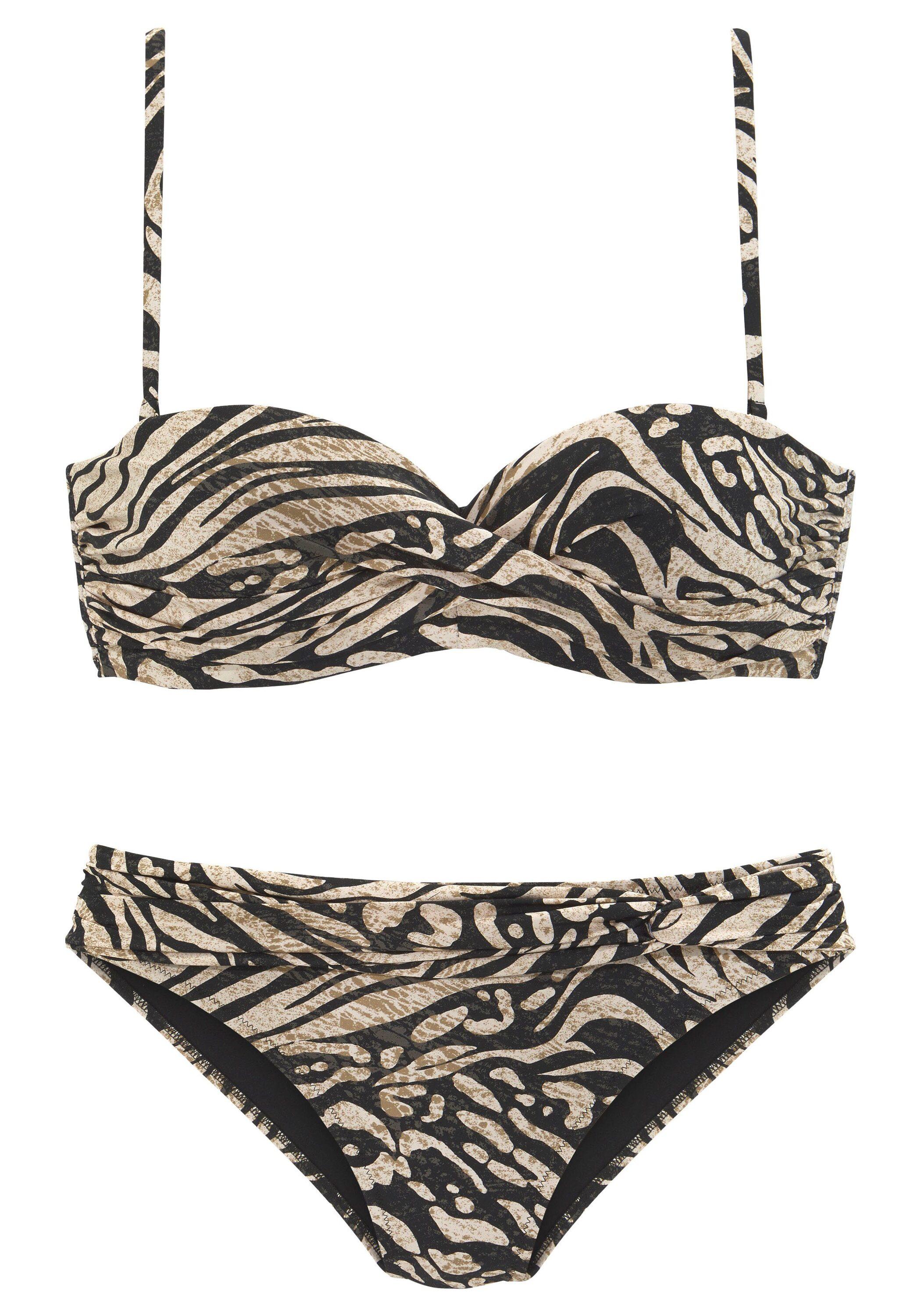 Raffinierter Bügel-Bandeau-Bikini von Bruno Banani. Alloverprint mit glänzendem Metallic-Schimmer. Top mit abnehmbaren Trägern und Weiche Microfaser-Qualität.
