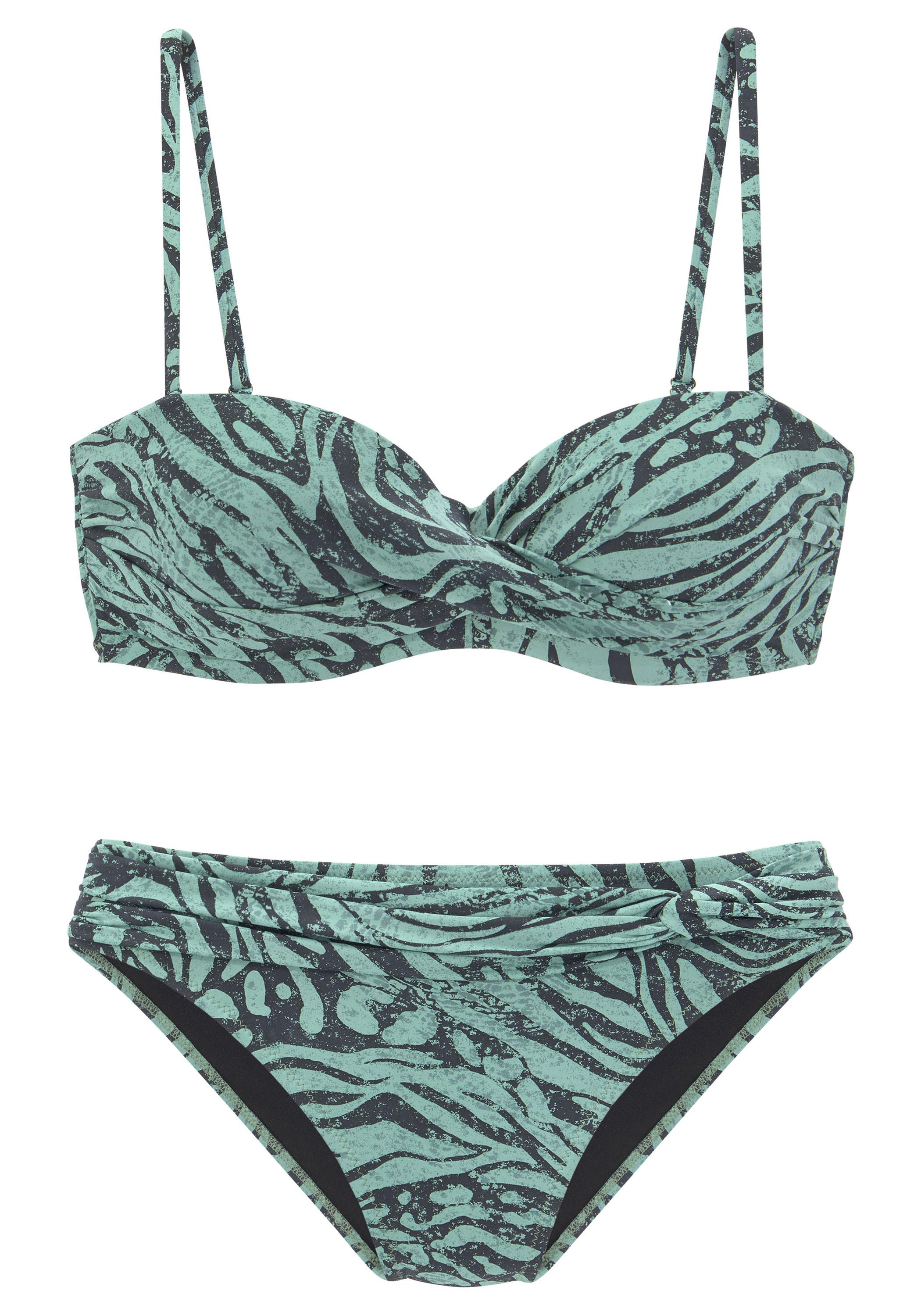 Raffinierter Bügel-Bandeau-Bikini von Bruno Banani. Alloverprint mit glänzendem Metallic-Schimmer. Top mit abnehmbaren Trägern und Weiche Microfaser-Qualität.