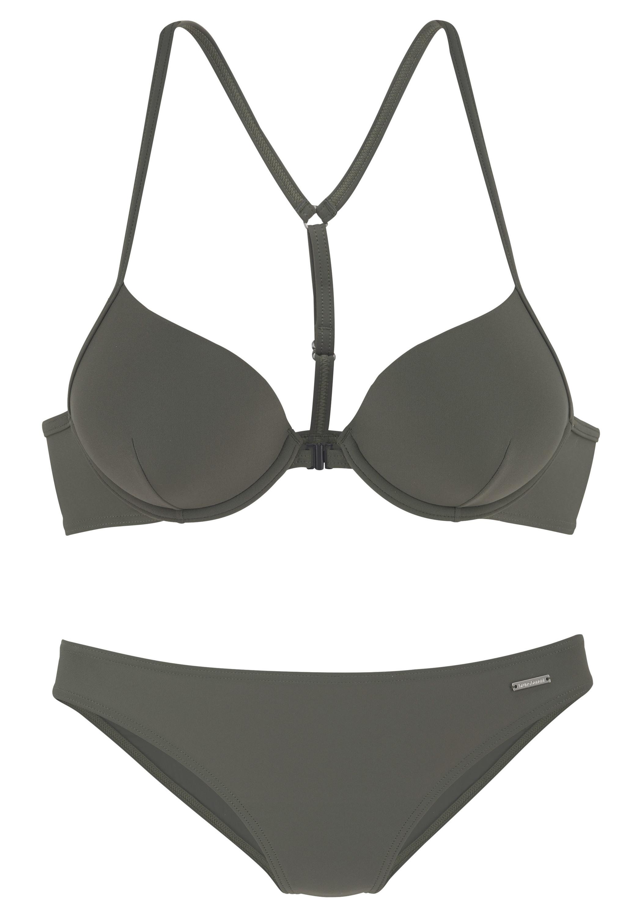 Stylischer Look in 3 angesagten Unifarben. Wattierte Cups mit eingearbeiteter Verstärkung für ein atemberaubendes Dekolleté. Top vorn zu schließen. Träger im Rücken verstellbar.