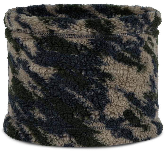 Kurzes Multifunktionstuch aus wärmendem Fleece-Material; Camouflage-Dessin; Material 100% Polyester.