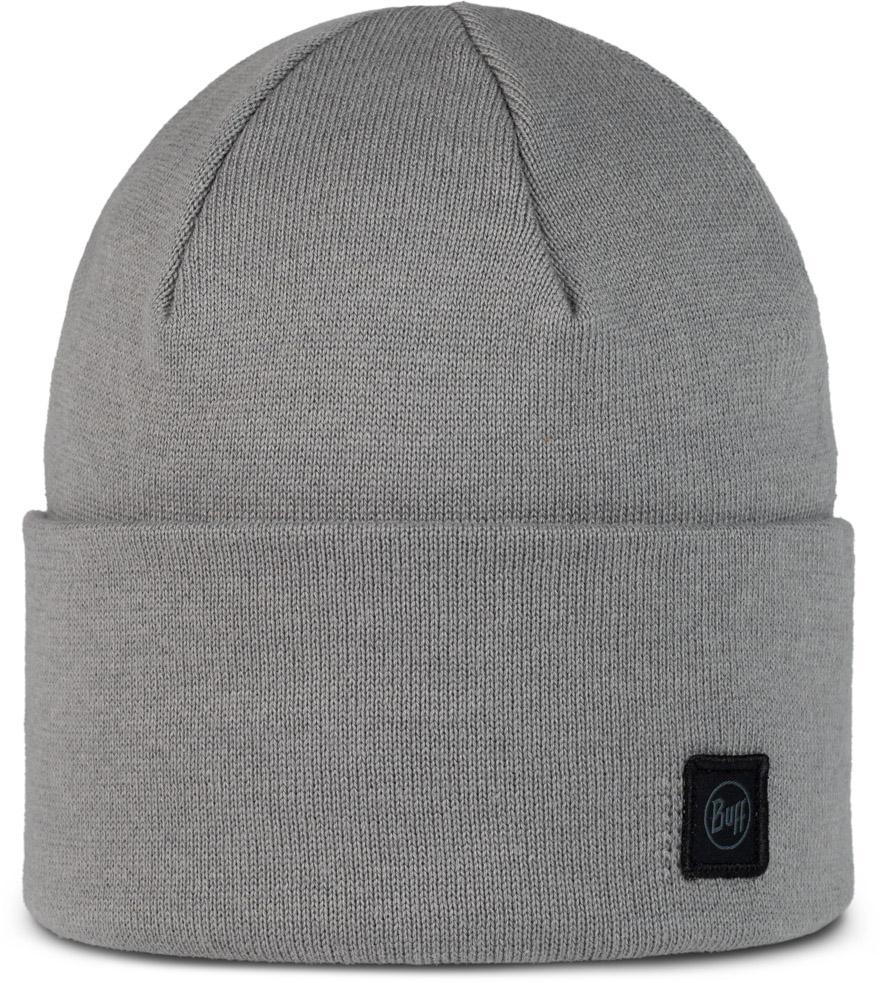Fein gestrickte Mütze für den Winter; sehr breiter Umschlag; Label-Patch; wärmende Eigenschaft; Material 83% Polyacryl, 12% Wolle, 5% Baumwolle.