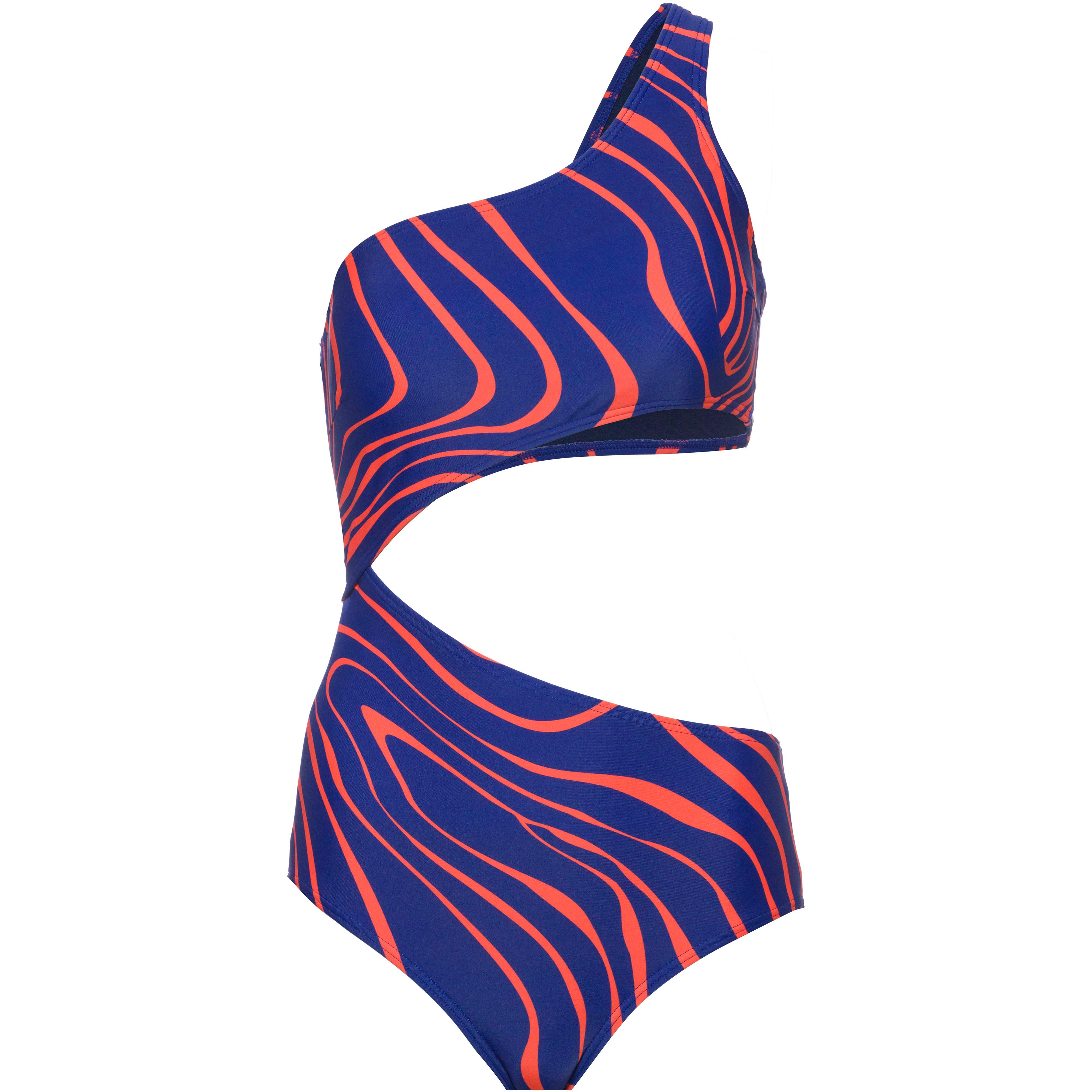 Monokini mit großem, seitlichem Cut-out; elastisches Material mit Allover-Print; One-Shoulder-Träger; Cups mit herausnehmbaren Softpads; mittelhohe Beinausschnitte; Obermaterial 82% Polyamid (recycelt), 18% Elastan; Futter 100% Polyester.
