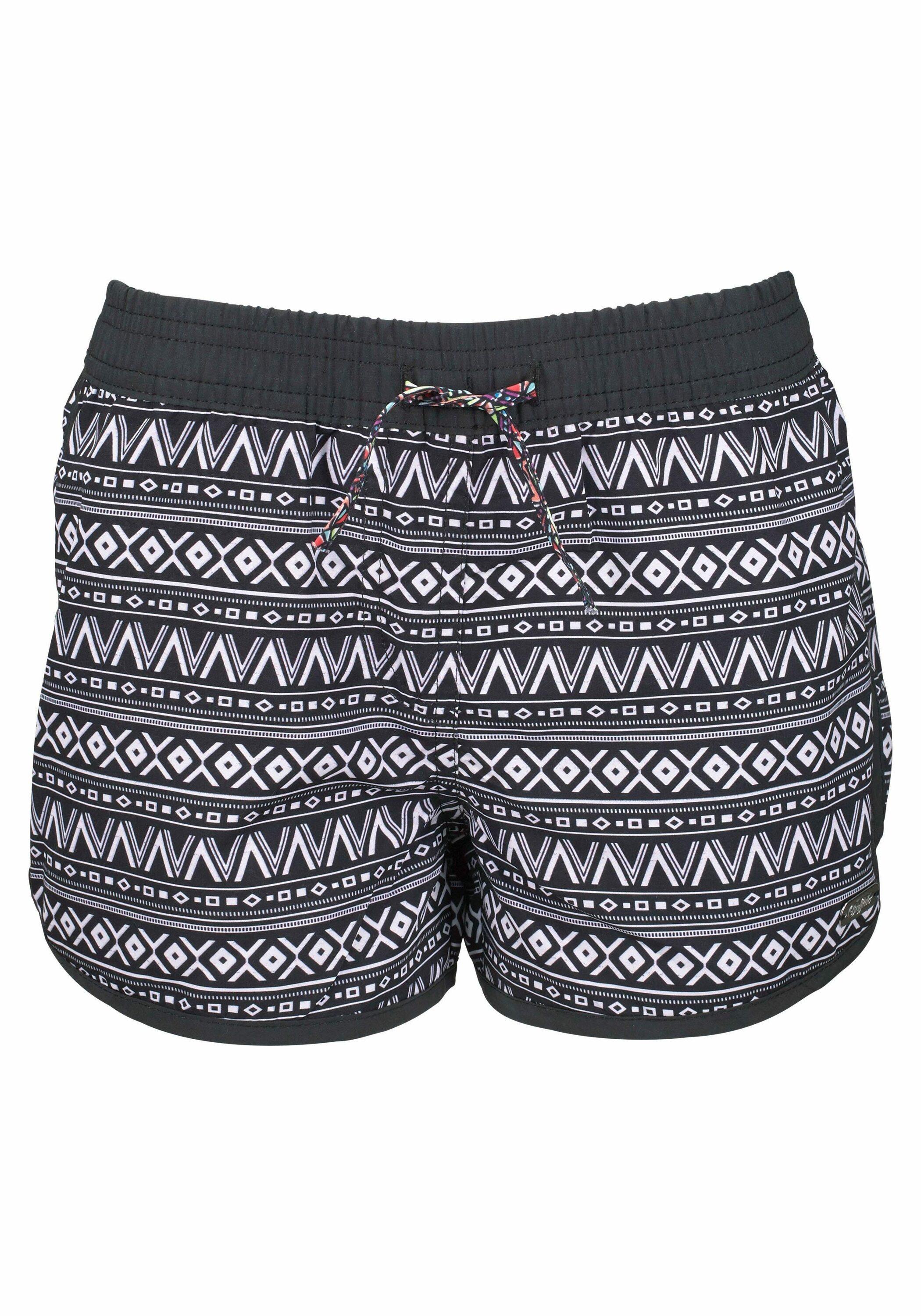 Im coolen Ethno- Look. Elastisches Bündchen mit Außenkordel. Kleine Innentasche. Gesäßtasche mit Klettverschluss. Softe Microfaser-Qualität.