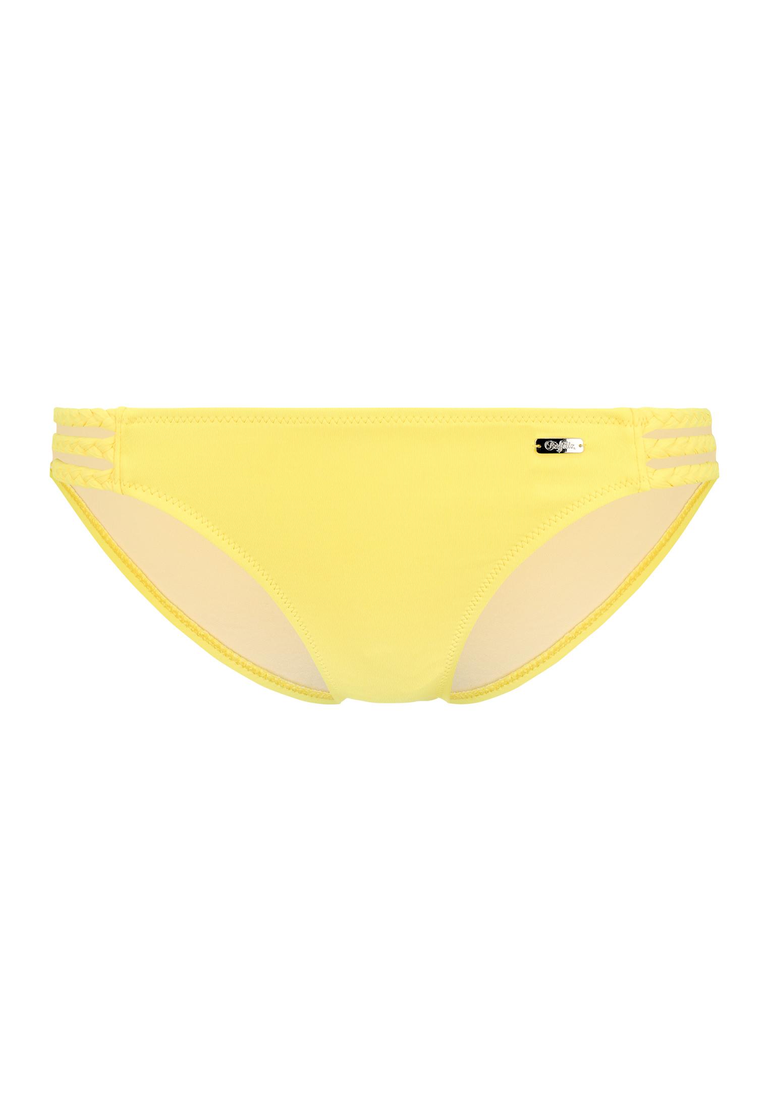 In den angesagten Trendfarben der Saison. Mit drei geflochtenen Bändern seitlich. In Gelb, Türkis, Rosa, Blau gefüttert. Softe Microfaser-Qualität.