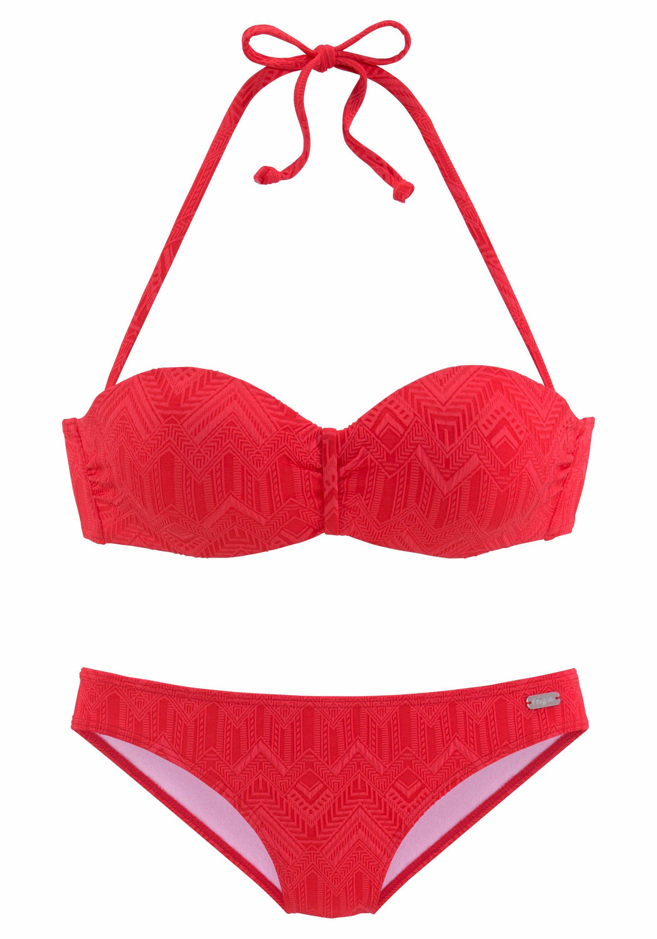 In 3 aktuellen Unifarben. Modische Strukturware. Top mit wattierten Cups, in Cup A+B zusätzlich mit herausnehmbaren Kissen. Seitliche Stäbchen für guten Halt. Abnehmbare Träger, im Nacken zu binden. Top im Rücken zu schließen. Obermaterial: 95% Polyamid, 5% Elasthan. Futter: 100% Polyester.