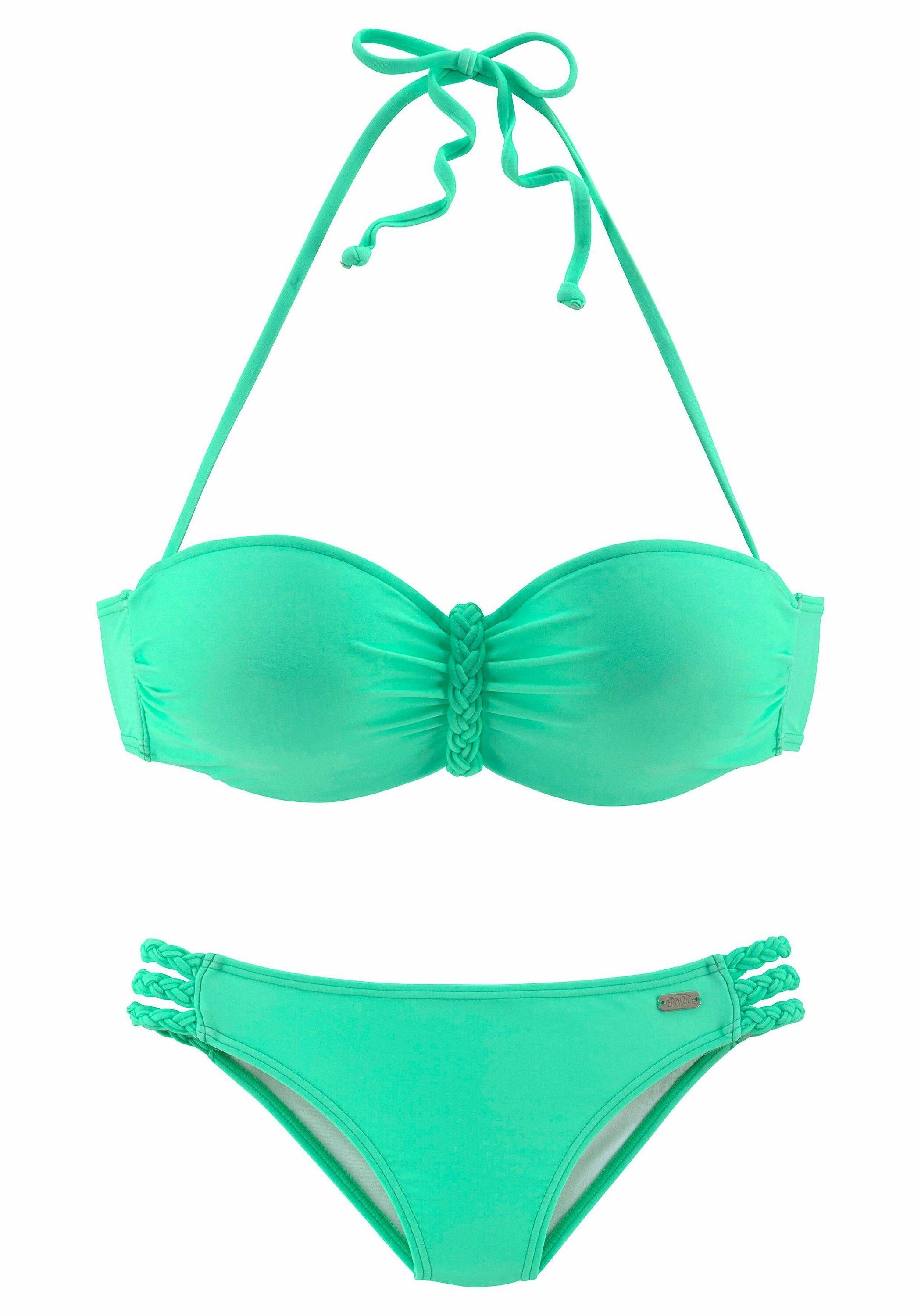 Bademoden von BUFFALO im neuen Trend-Look mit geflochtenen Details an den Abschlüssen. Bügel-Bandeau-Bikini mit modisch gerafften und wattierten Cups. Abnehmbare Träger und seitliche Stäbchen für einen perfekten Halt. Im Nacken zu binden und im Rücken zu schließen