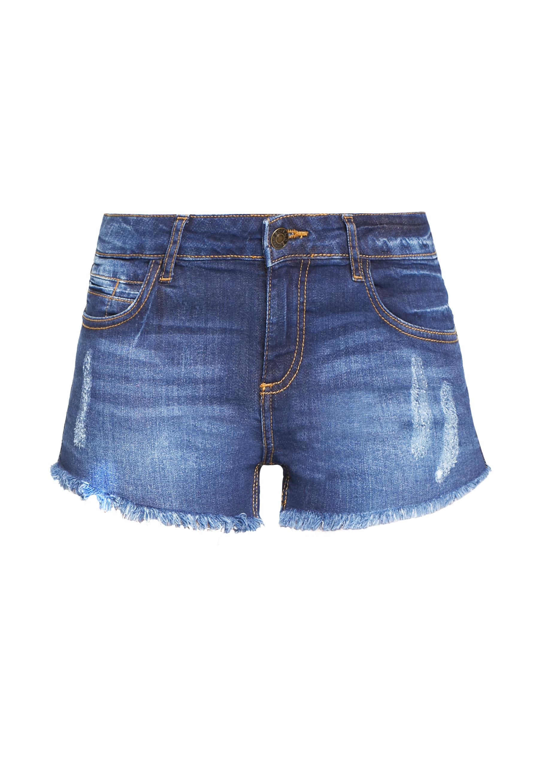 In cooler Vintage-Optik mit Used-Effekten und Fransen am Saum. Five-Pocket-Style mit Logobadge hinten (enthält nichttextile Teile tierischen Ursprungs). Innenbeinlänge ca. 5 cm. Aus 98% Baumwolle (unterstützt Cotton made in Africa) und 2% Elasthan.