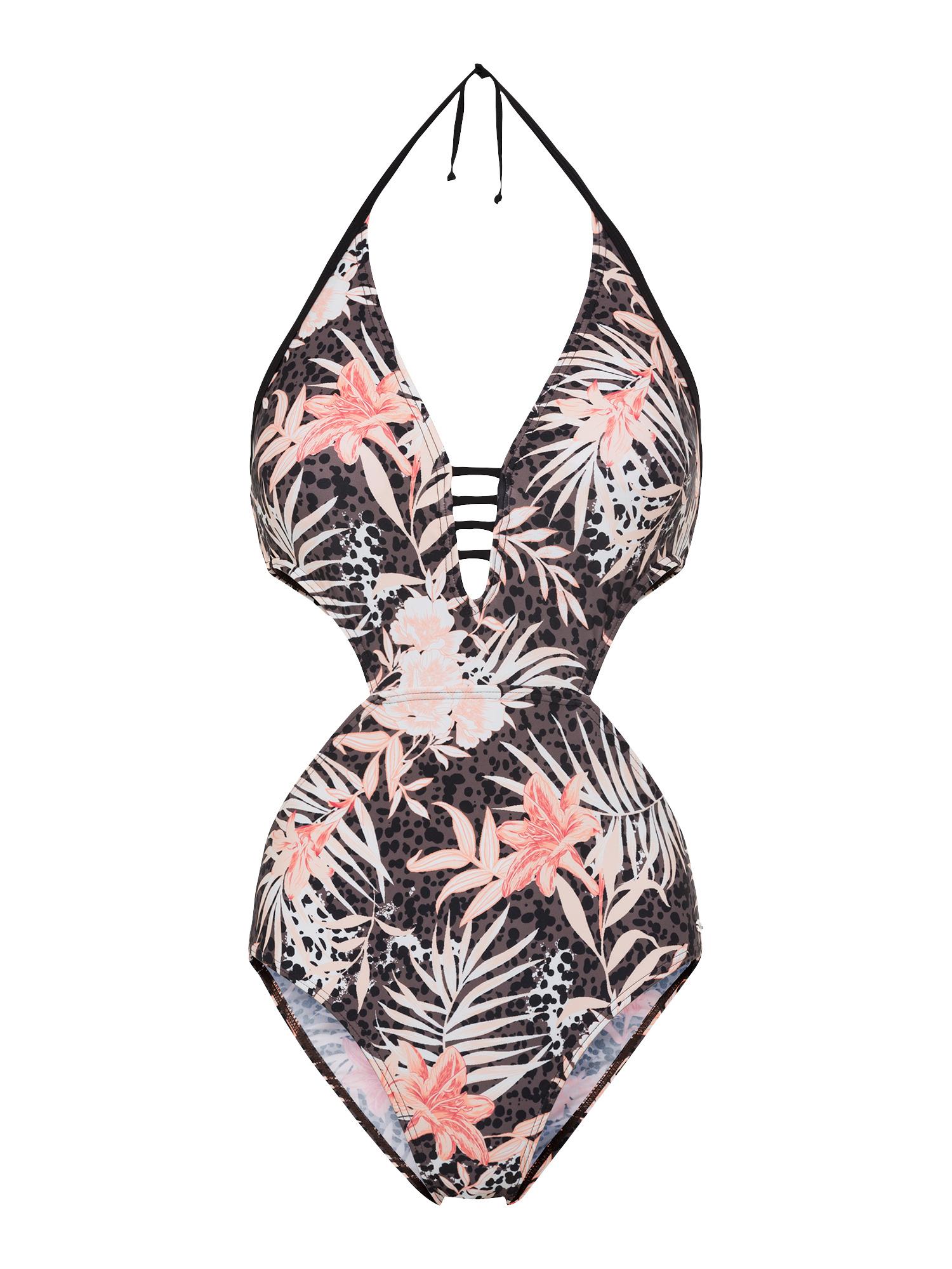 Monokini von Buffalo im modischen Design und kontrastfarbenen Details. Herausnehmbare Softcups. Träger im Nacken zu binden und im Rücken zu schließen. Enthält recyceltes Polyamid. Obermaterial: 82% Polyamid, 18% Elasthan. Futter: 100% Polyester