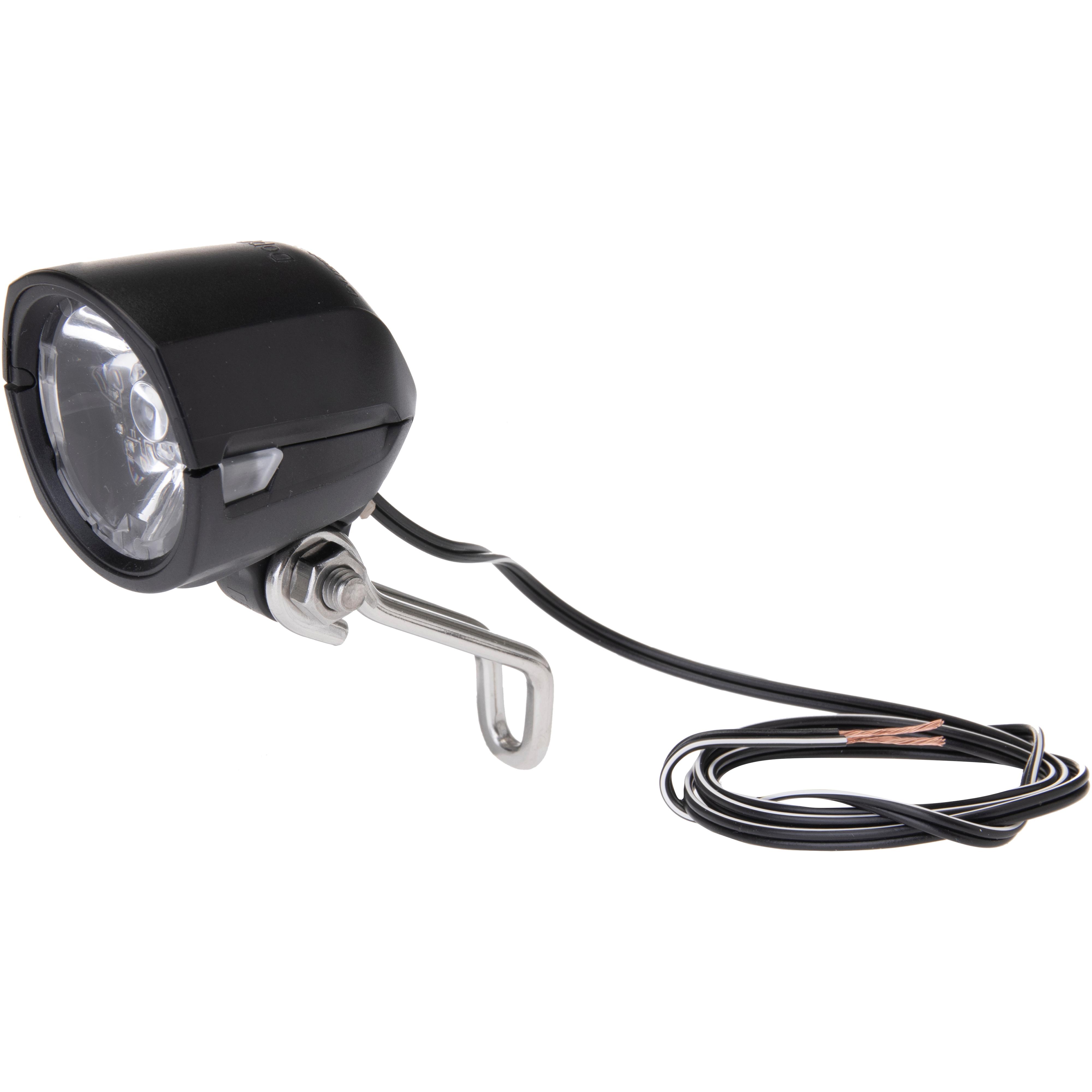 LED-Frontlicht mit max. ca. 35 Lux, für den Dynamo; Nahfeld-Ausleuchtung; Standlicht; ansteckbarer Front-Rückstrahler; Sicherheits-Seitenabstrahlung; Made in Germany.