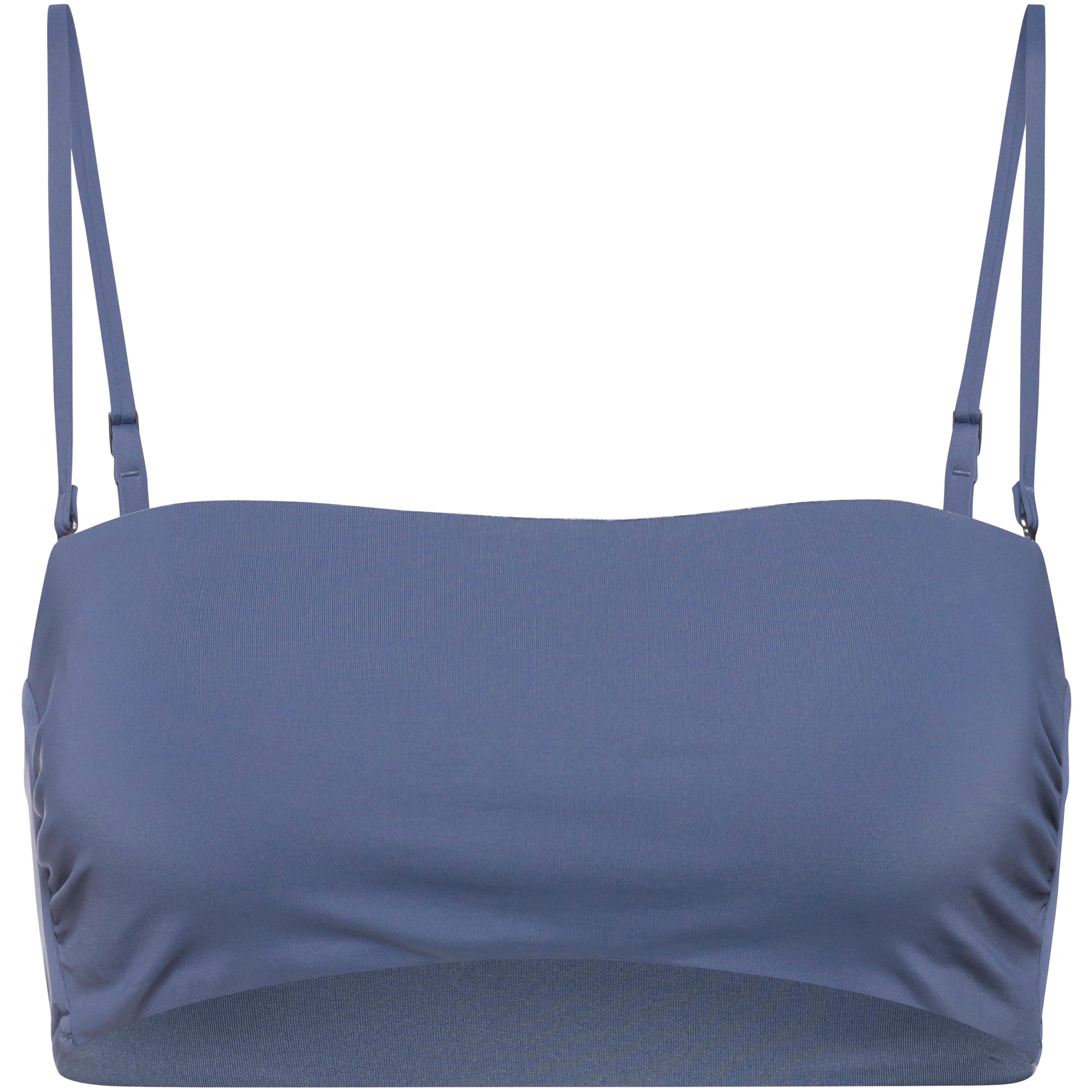Bandeau Bikini-Oberteil aus schnelltrocknendem Gewebe; Längen verstellbare Träger; stabile Stäbchen in den Seiten; herausnehmbare Softpads; Recyclingmaterial; Obermaterial 83% Polyamid, 17% Elastan, Futter 92% Polyester, 8% Elastan.