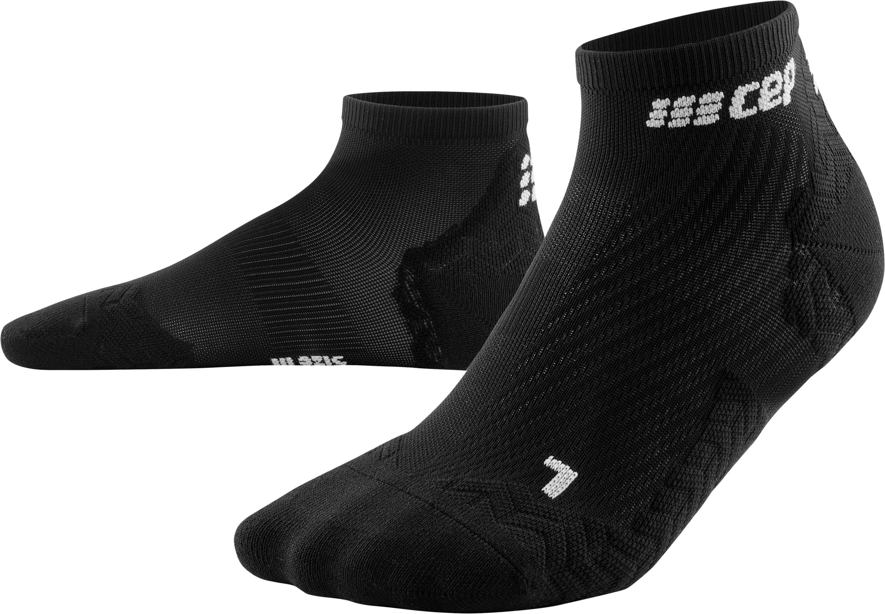 Durch ihre kompressive Passform und die angenehmen Materialien minimieren die Ultralight Socks Low Cut von CEP das Blasenrisiko. Gleichzeitig gewährleisten die ultradünnen, leichten Funktionsfasern ein perfektes Klimamanagement. Grip im Schuh und Kontrolle für ein direktes Laufgefühl erzeugen die Zickzack-Lamellen des ANTI-SLIP-PROFILS.