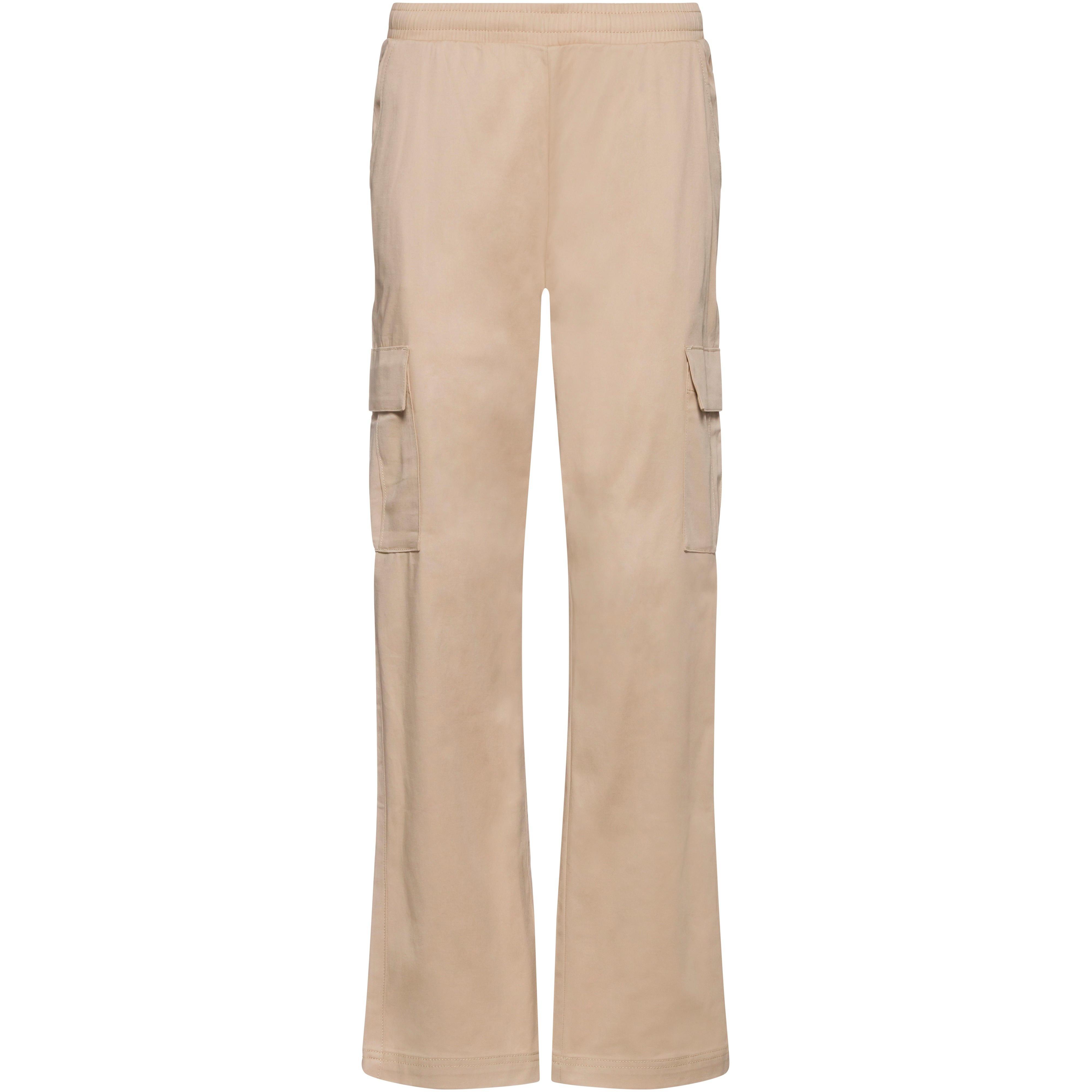 Cargohose aus strapazierfähigem Gewebe; weitenregulierbarer Elastikbund mit innenliegendem Kordelzug; seitliche Eingriffstaschen; 1 Gesäßtasche; 2 Beintaschen mit Klappen; Material I 98% Baumwolle, 2% Elastan, Material II 100% Baumwolle.