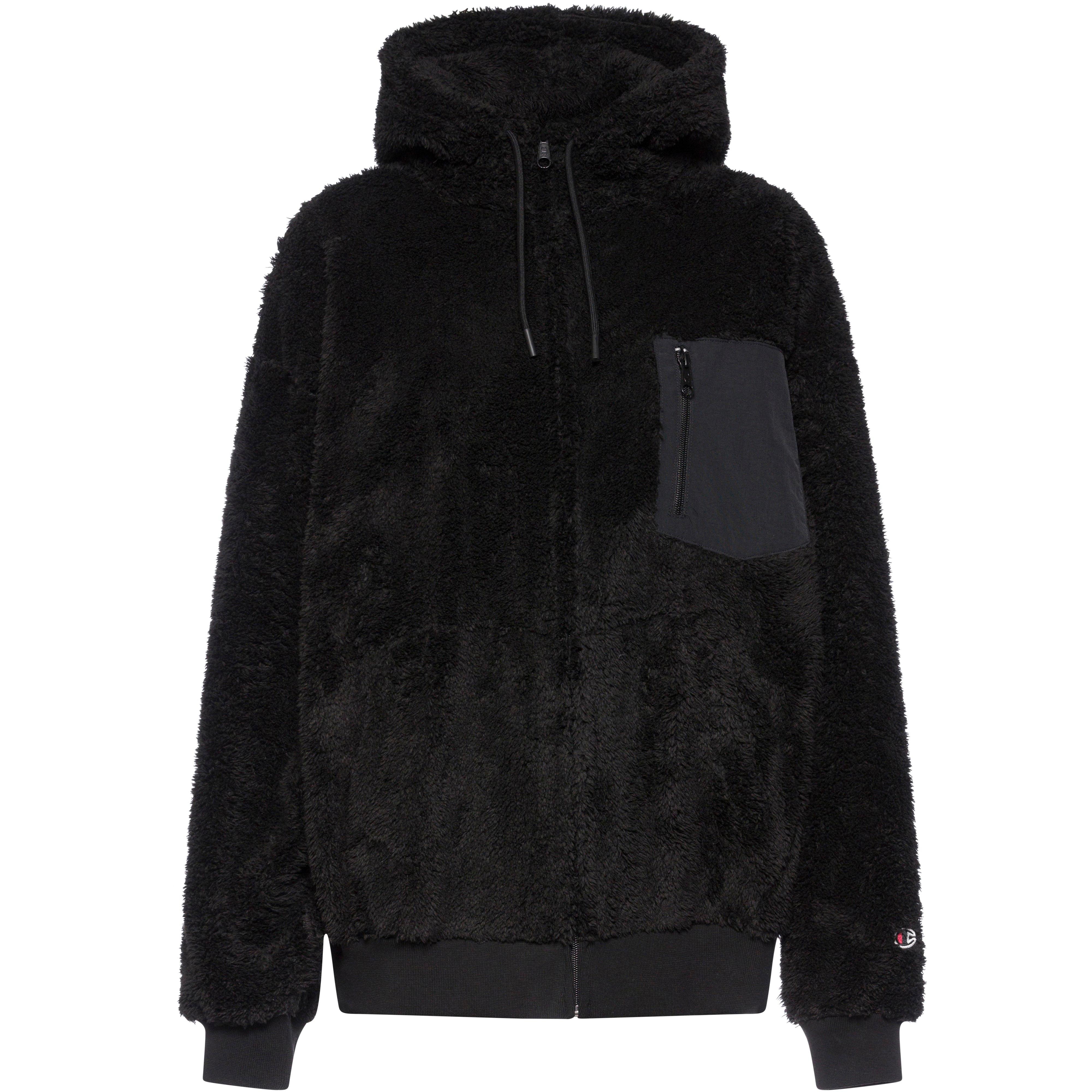 Kuschelige Fleecejacke in weiter Loose Fit Passform; verstellbare Kapuze mit integriertem Kordelzug; 1 aufgesetzte Brusttasche mit Reißverschluss; seitliche Eingriffstaschen; Markendetails; wir empfehlen die nächst kleinere Größe; Material I 60% Polyester, 40% Baumwolle, Material II 100% Polyamid, Material III 100% Baumwolle, Material IV 98% Baumwolle, 2% Elastan.