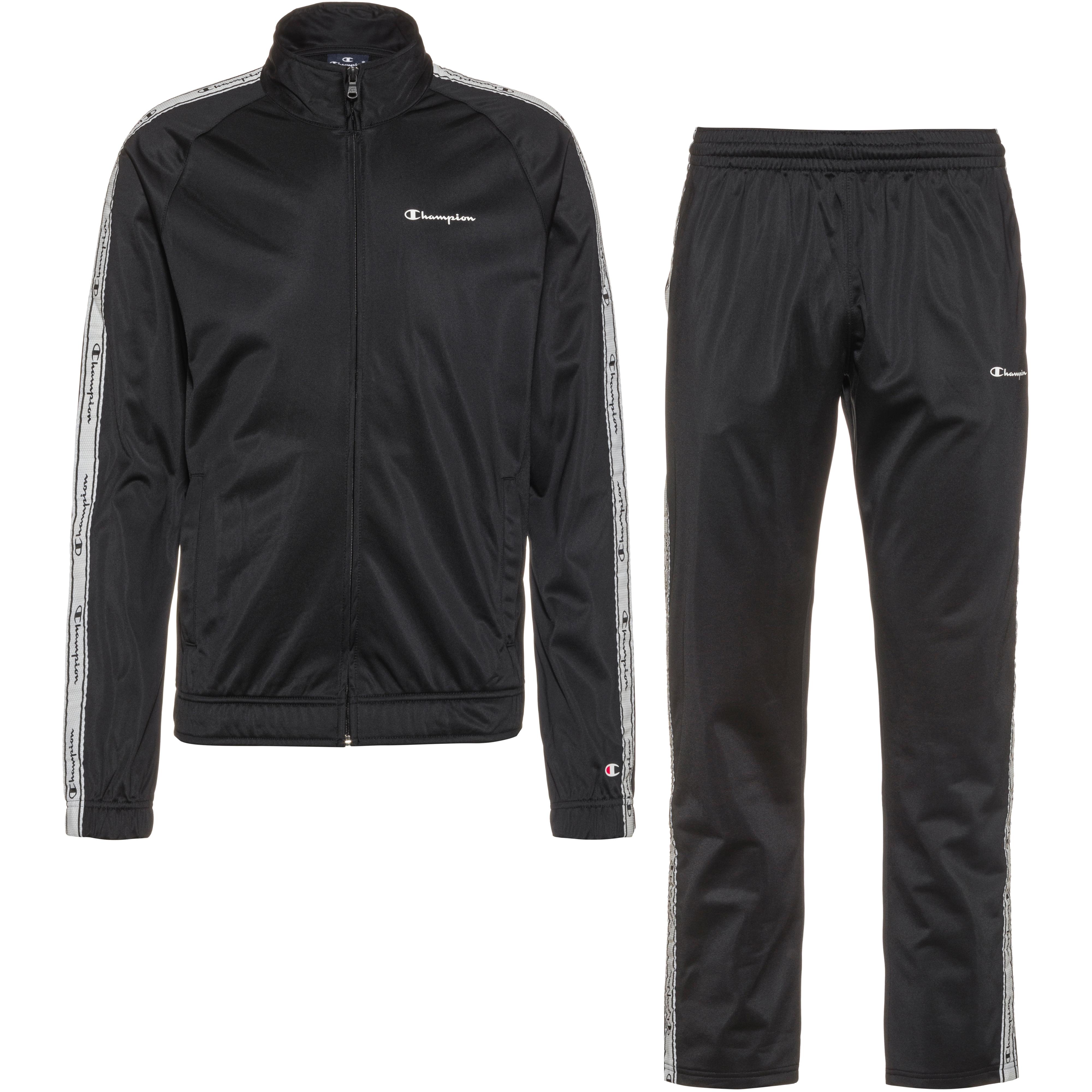 Bequemer Trainingsanzug mit diversen Markendetails; Jacke mit Raglanärmel, welche für optimale Bewegungsfreiheit; Stehkragen; seitliche Eingriffstaschen; elastischer Saum; Hose mit weitenregulierbarem Bund mit Kordelzug und seitliche Eingriffstaschen; Material 100% Polyester.