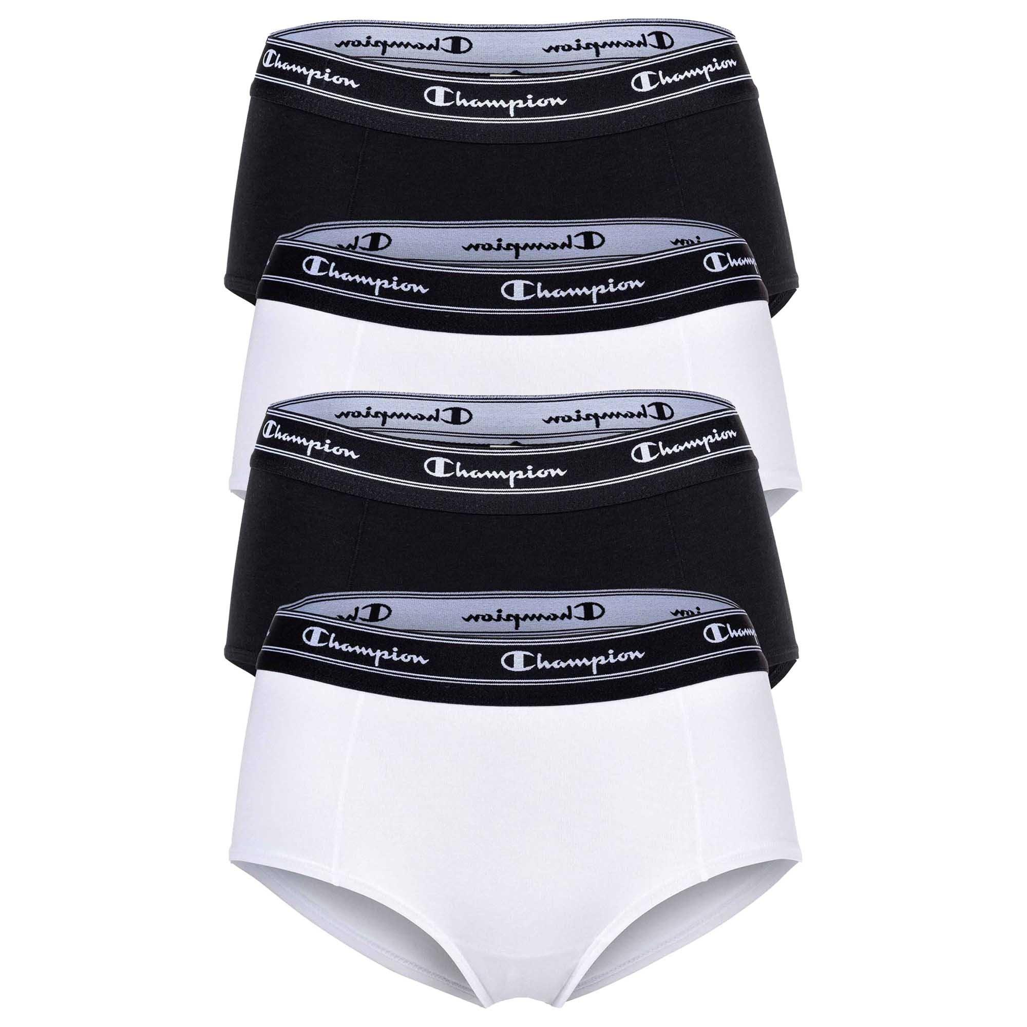 Champion Damen Hipster im 4er Pack. Einfarbige Slips aus weicher Baumwolle mit Stretch-Anteil für hohen Tragekomfort. Basics mit bequemen Logo-Bund.