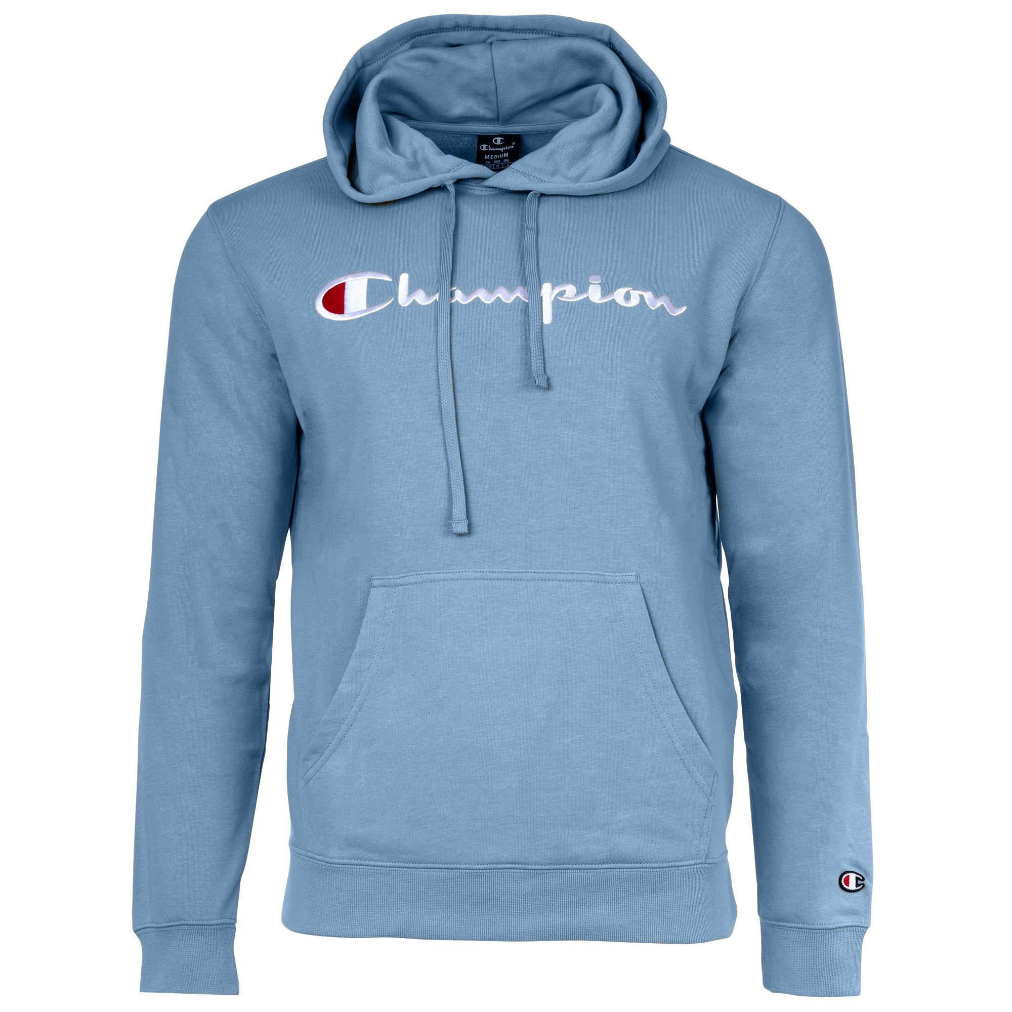 Einfarbiger Hoodie für Herren von der Marke Champion. Sportlicher Pullover mit großem Logo auf der Vorderseite. Mit praktischer Kängurutasche und Kapuze.
