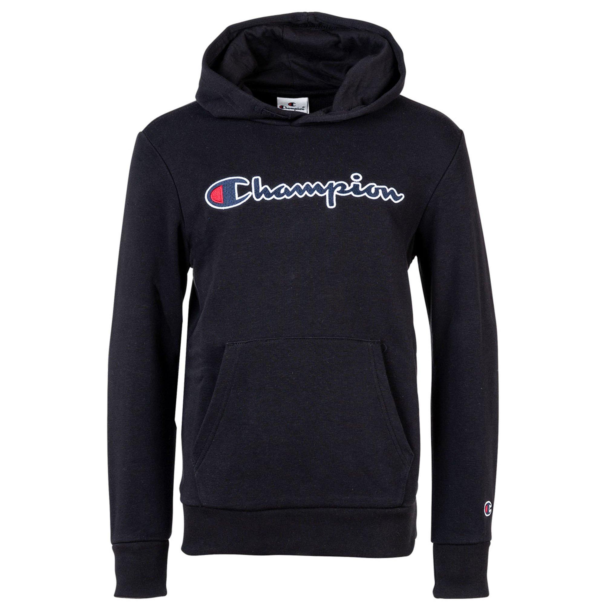 Hoodie für Jungen und Mädchen von der Marke Champion. Großer Schriftzug auf der Vorderseite und kleine Logo Stickerei am linken Arm. Aus angenhmer Baumwollmischung.