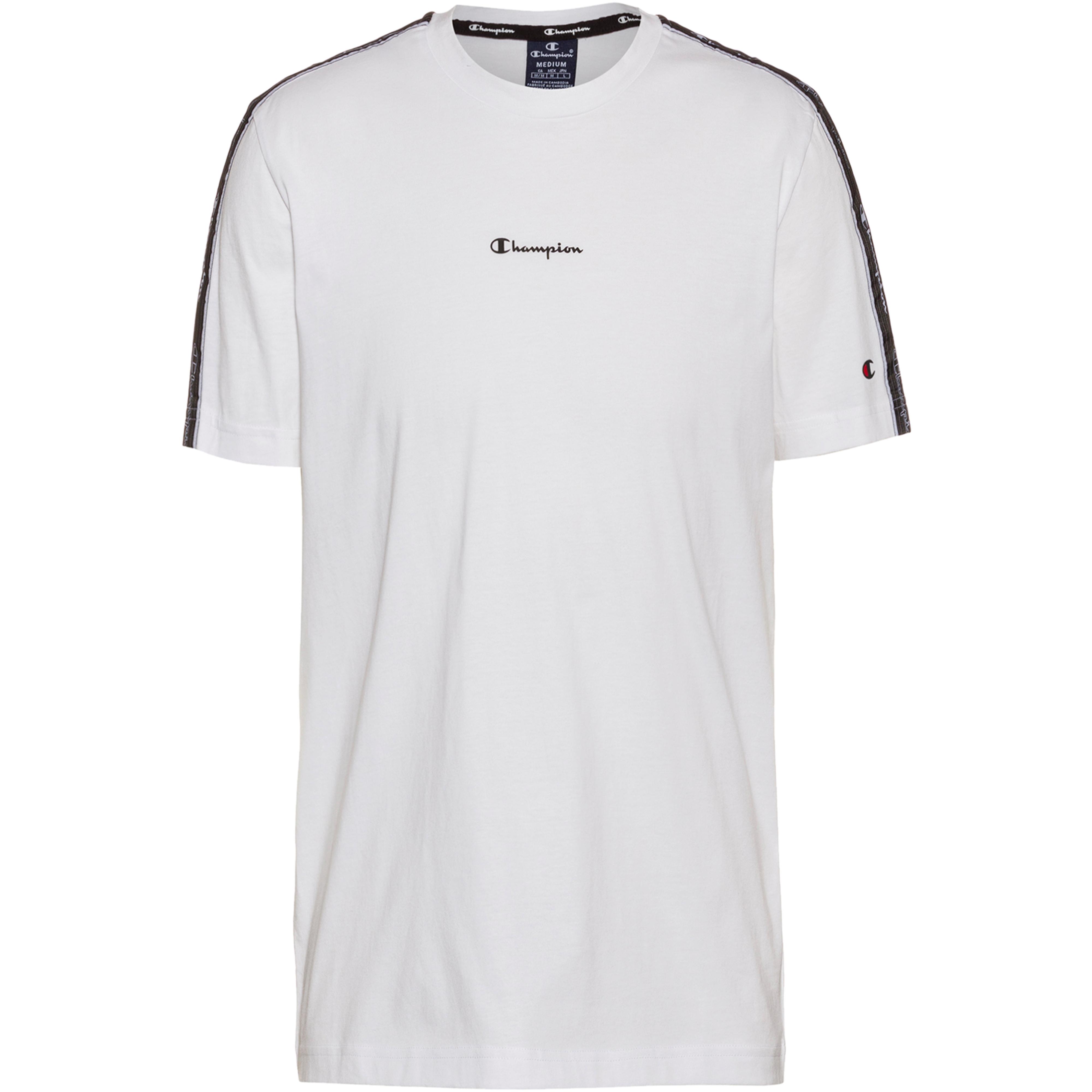 CHAMPION Bequemes T-Shirt aus weichem Gewebe; Rundhalsausschnitt; farblich abgesetzte Seitenstreifen auf den Ärmeln mit Marken-Details; Marken-Schriftzug auf der Front; Material 100% Baumwolle.