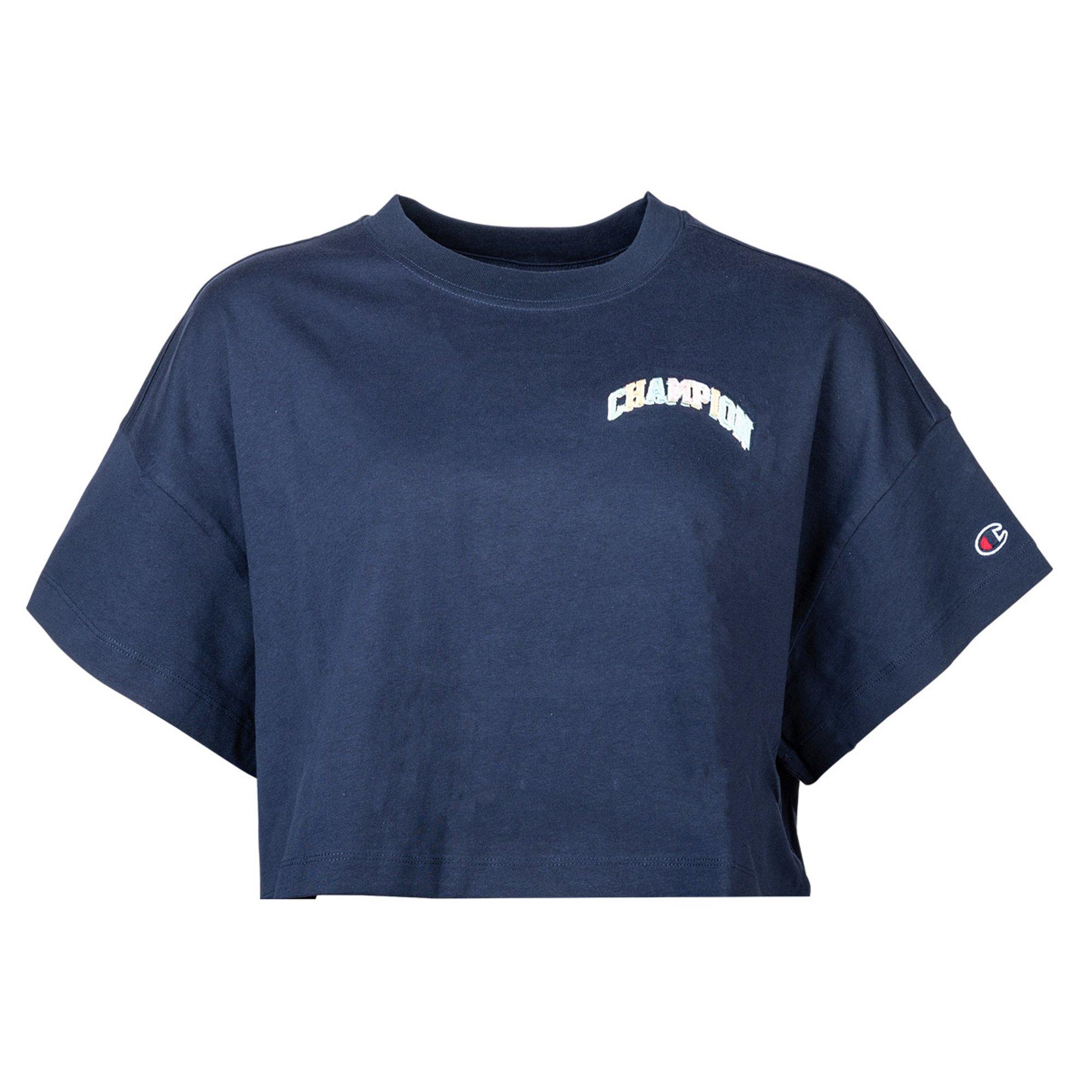 Angesagtes bauchfreies Crop-Top für Damen von der Marke Champion. Markentypischer Logo-Print und Rundhals-Ausschnitt. Weiche Baumwolle.