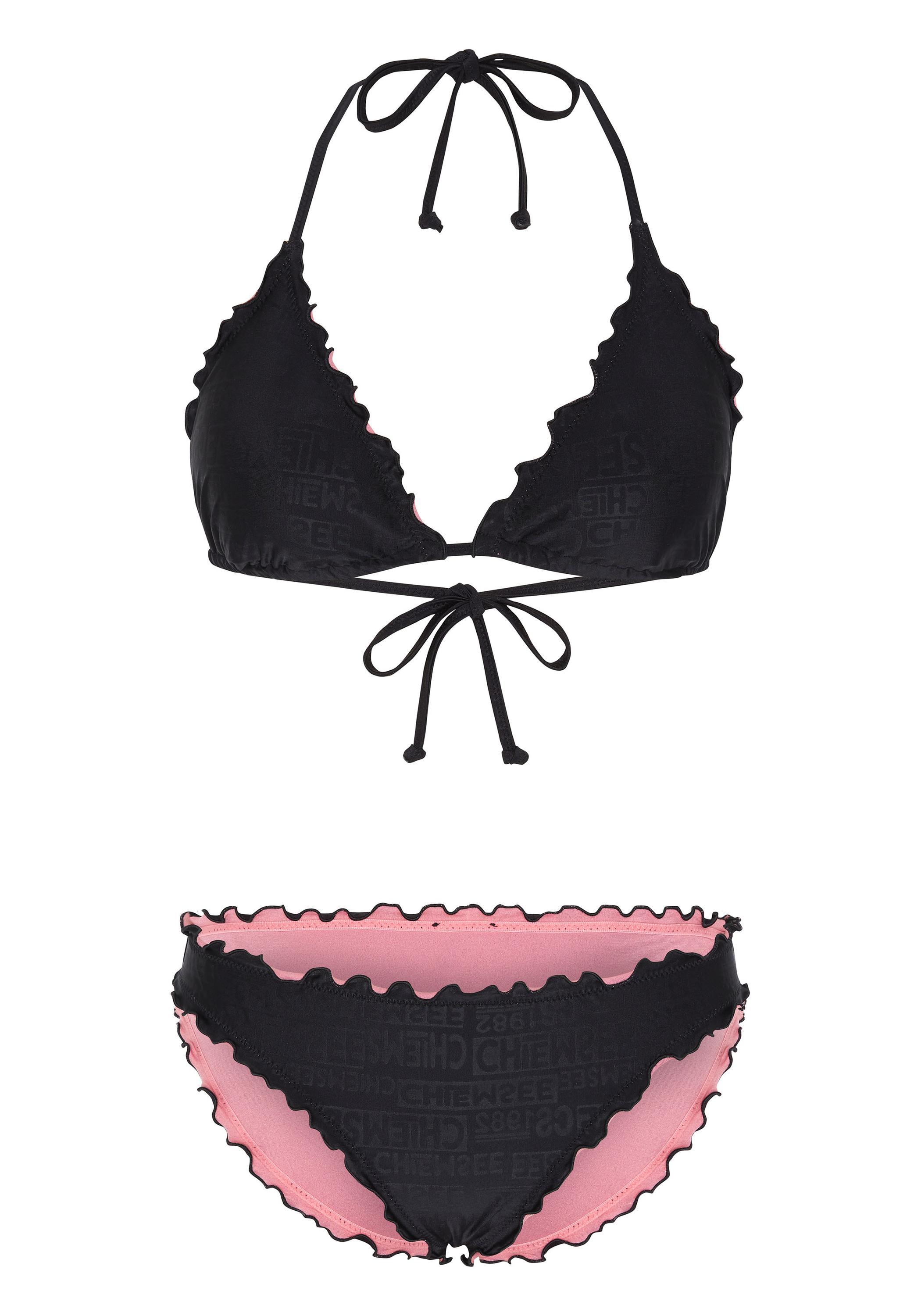 Im angesagten Design wird dieser CHIEMSEE Triangle-Bikini mit Rüschenabschlüssen im Sommer mehr als nur ein Augenpaar auf sich ziehen. Das Triangel-Oberteil mit herausnehmbaren Pads ist im Nacken und am Rücken zu binden. Selten sah das Auftauchen aus dem Wasser so anmutig aus wie mit dem modisch-verspielten CHIEMSEE Triangle-Bikini.