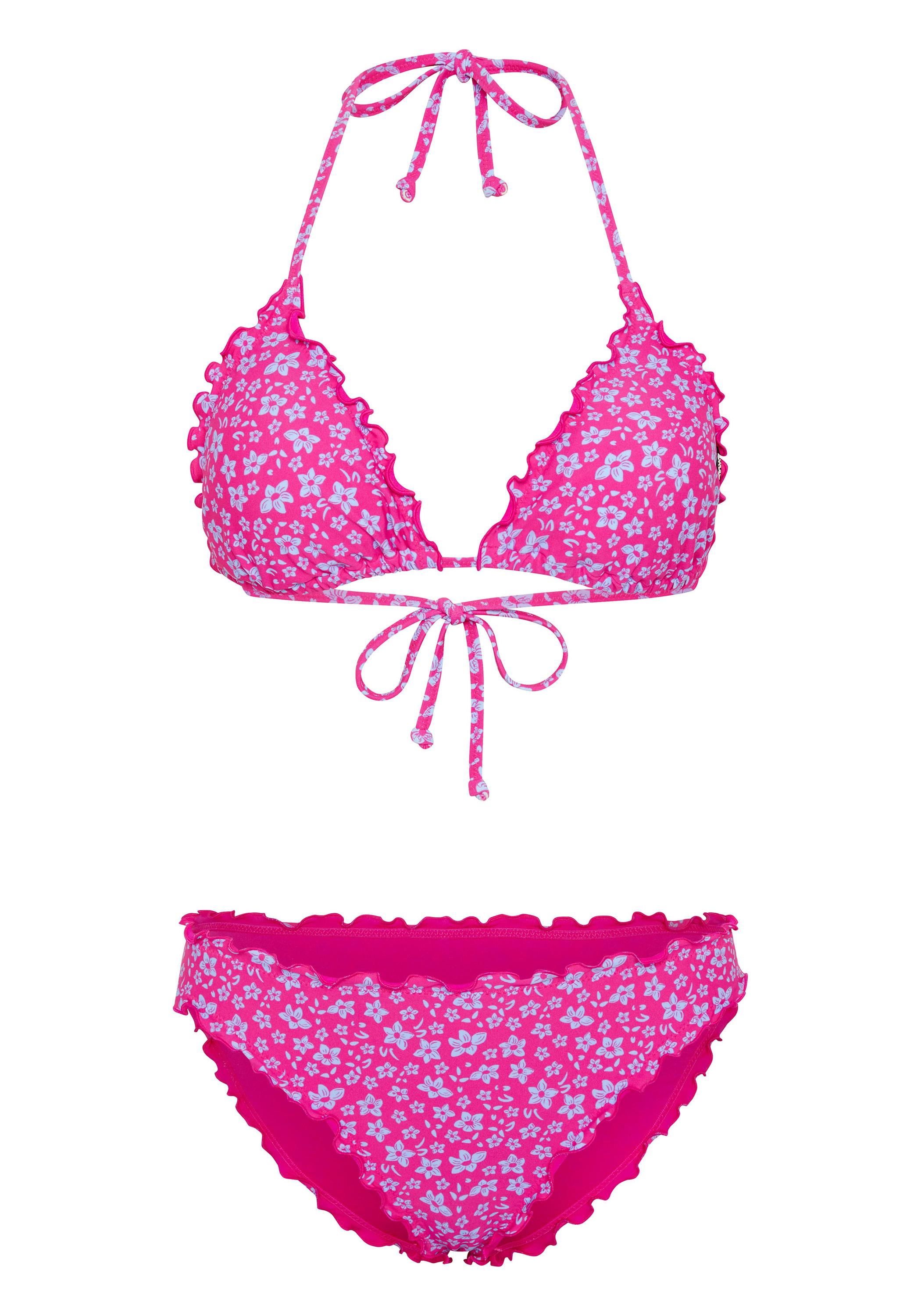 Im angesagten Design wird dieser CHIEMSEE Triangle-Bikini mit Rüschenabschlüssen im Sommer mehr als nur ein Augenpaar auf sich ziehen. Das Triangel-Oberteil mit herausnehmbaren Pads ist im Nacken und am Rücken zu binden. Selten sah das Auftauchen aus dem Wasser so anmutig aus wie mit dem modisch-verspielten CHIEMSEE Triangle-Bikini.