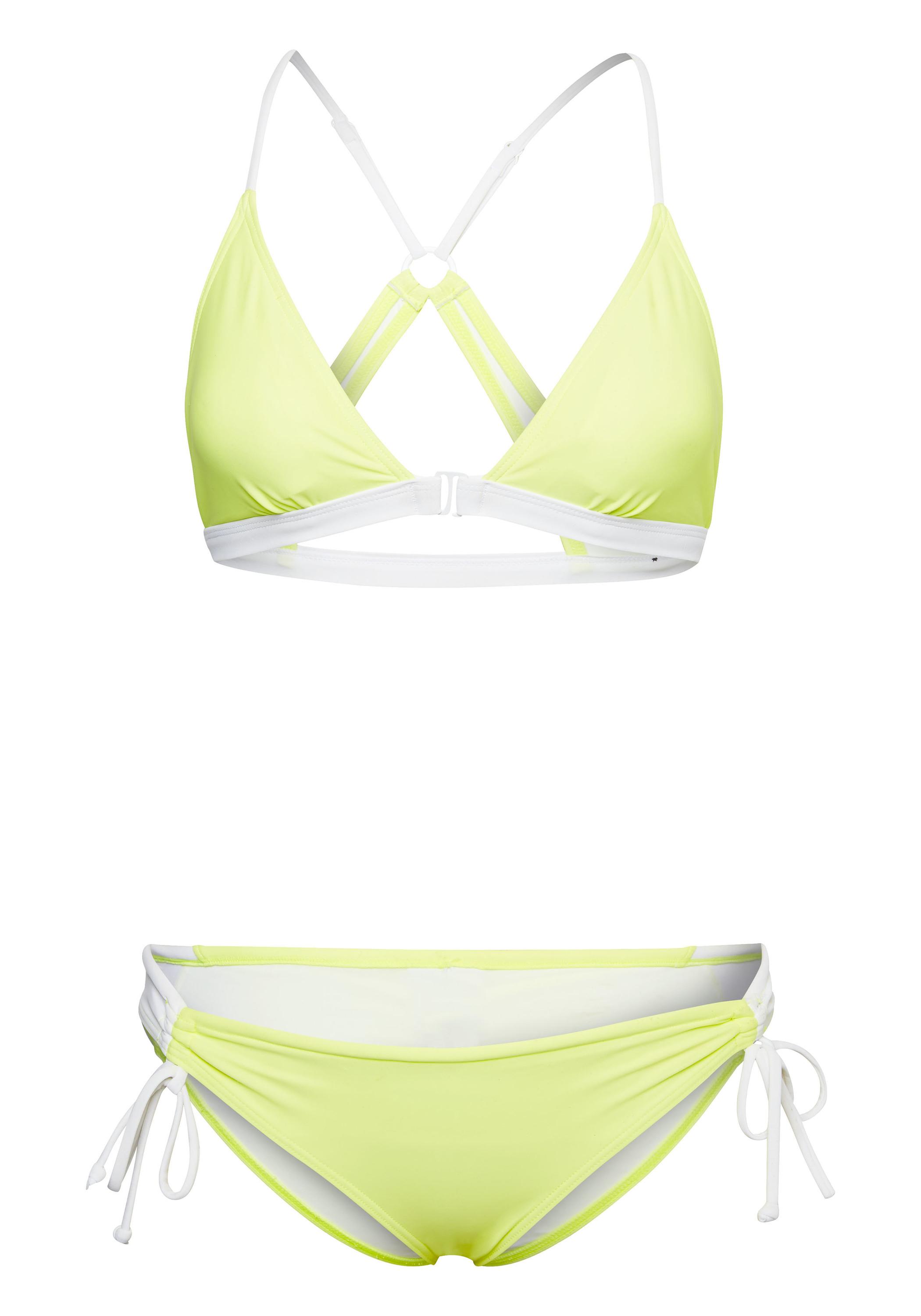 Der sportlich funktionale CHIEMSEE Bikini ist mit seinem coolen Look und gekreuzten Trägern der absolute Hingucker am Strand. Die Hose lässt sich durch einen speziellen Tunnelzug deinem Körper perfekt anpassen und bietet perfekten Halt in jeder Welle. Die hintere Raffnaht weist eine leichte Herzform auf, die einen erstklassigen Knack-Po garantiert. Das Oberteil kommt mit einem unifarbenem Unterbrustband und ist auf der Front zu Schließen.