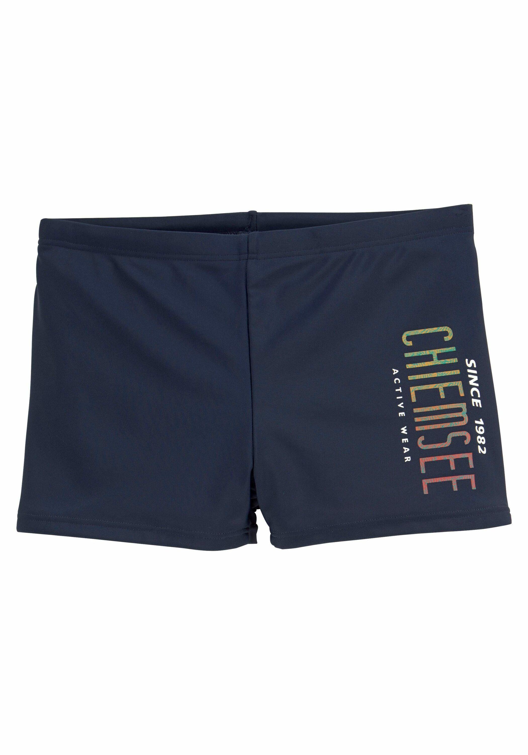 Boxerbadehose von Chiemsee mit Logoaufdruck und Innenkordel. Obermaterial: 80% Polyamid, 20% Elasthan. Futter: 100% Polyester