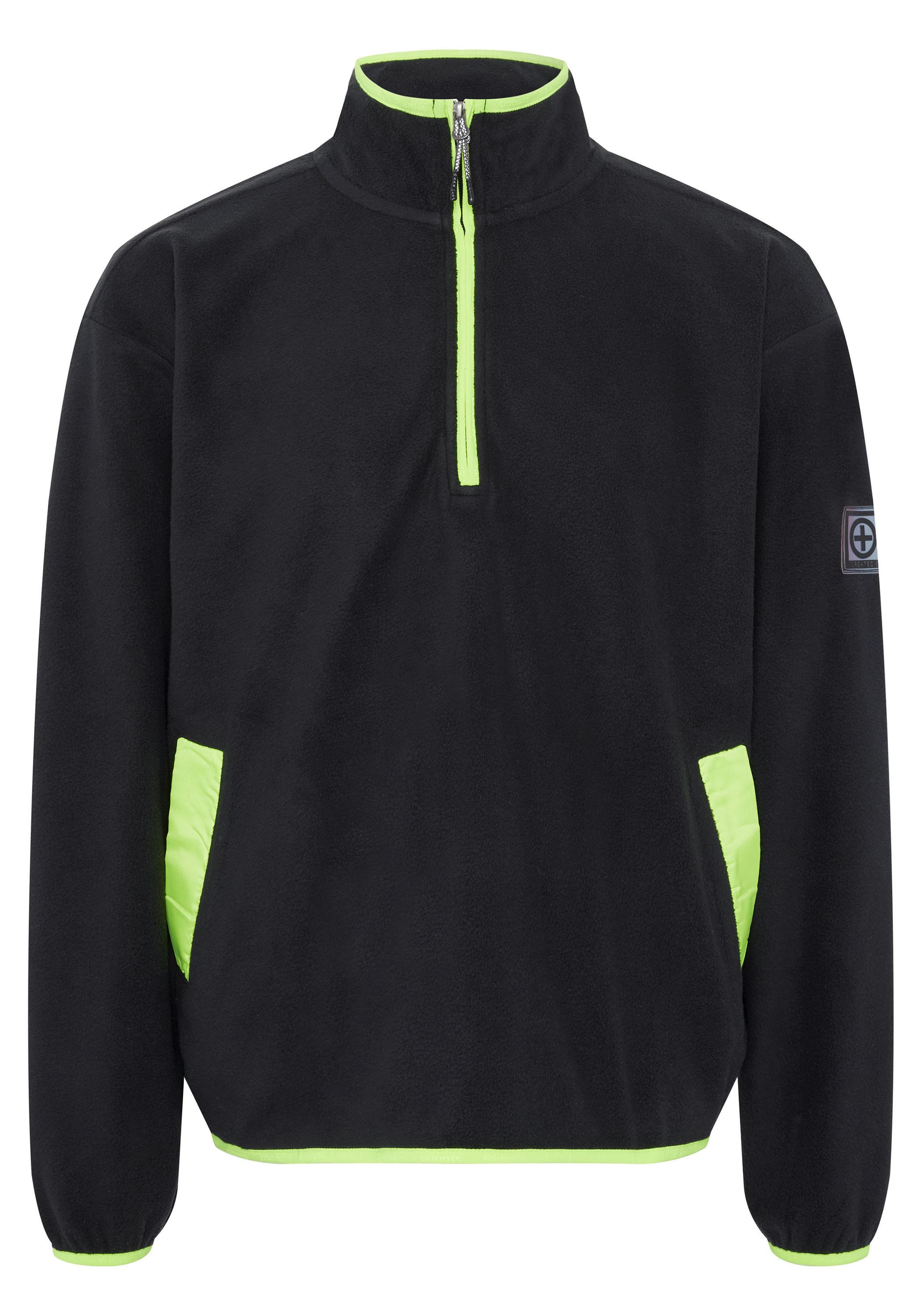 Wenn du dich morgens aufs Rad schwingst und in Richtung City flitzt, ist es noch frisch. Zum Glück hast du deinen CHIEMSEE Fleece dabei. Der Halfzip-pullover aus beidseitig weich angerautem Fleece mit Anti-Pilling-Finish hält dich warm. Der Fleecetroyer mit Stehkragen steht für einen aktiven Lifestyle zwischen Outdoor und City. Kontrastsäume und ein PLUSMINUS-Patch am linken Ärmel komplementieren den Look.