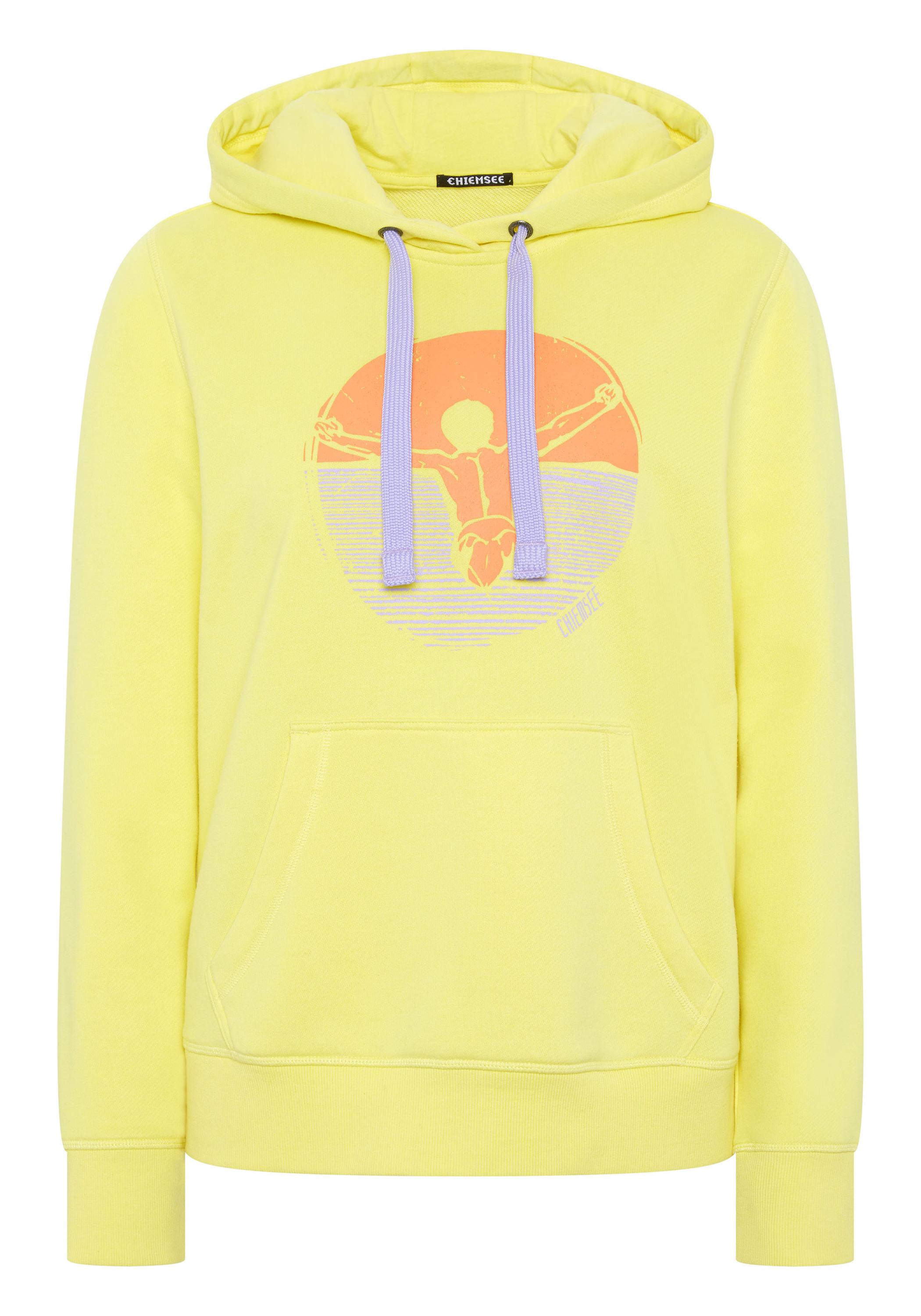 Neue Street-Vibes gefällig? Die gibt’s bei dem neu interpretierten CHIEMSEE Damen-Kapuzenpullover mit farblich abgesetztem Tunnelzugband inklusive. Denn er zeigt sich hinten mit ikonischem Jumper im individuellen Art-Design – cool! Besonders bequem ist das Essential dank der soften Baumwoll-Melange. Der lässig geschnittene Hoodie erweist sich als relaxtes Must-have für CHIEMSEE Fans und alle Wasserbegeisterten.