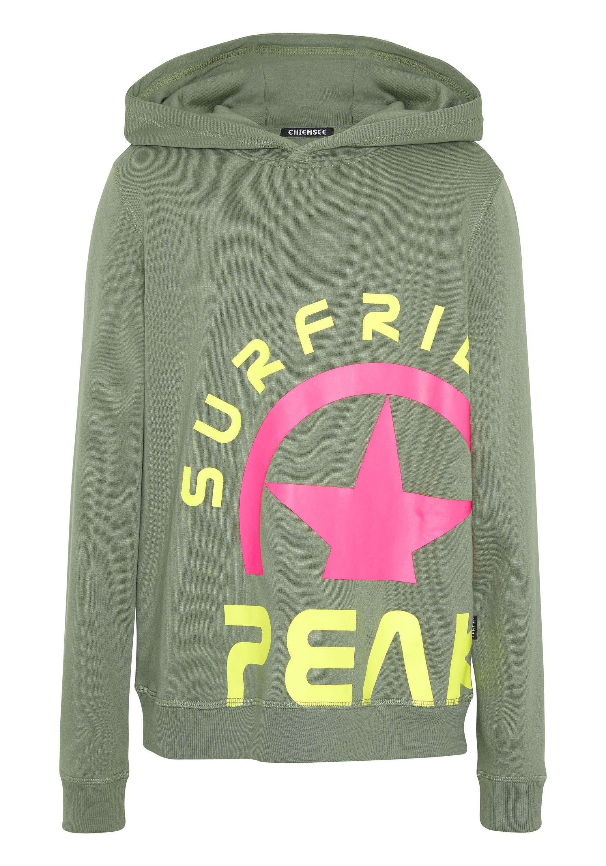 Lässige Surf-Vibes verströmen? Das geht mit dem erfrischend bedruckten Jungen-Kapuzenpullover von CHIEMSEE ab sofort ganz easy. Dafür sorgen der lockere Schnitt und der vorderseitige Sternprint mit „SURF RIDERS PEAK“-Schriftzug. Dank der weichen Baumwollmischung steht der CHIEMSEE Hoodie neben Individualität auch für einen super Komfort.