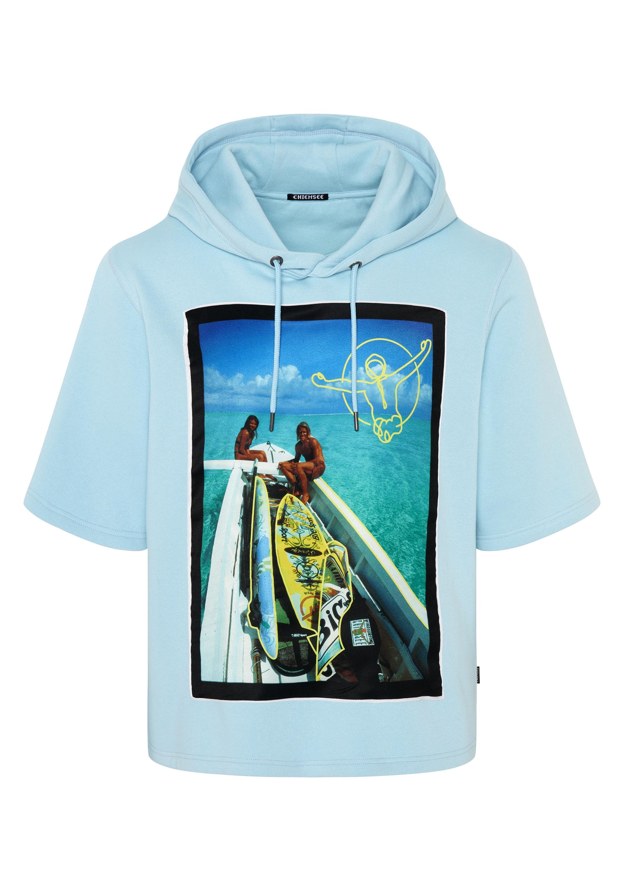 Mit diesem Hoodie-Shirt von CHIEMSEE erhält dein Outfit eine modebewusste Note. Ob Club-Styles, Casual-Looks oder individuelle Kombinationen, mit diesem Sweatshirt kreierst du immer das passende Outfit. Es überzeugt im zeitlosen Stil mit großem Fotoprint auf der Front und beweist einen angenehmen Tragekomfort. Die 3/4 Ärmel sehen besonders modisch aus und machen aus diesem Shirt den perfekten Begleiter für diverse Aktivitäten und Veranstaltungen.
