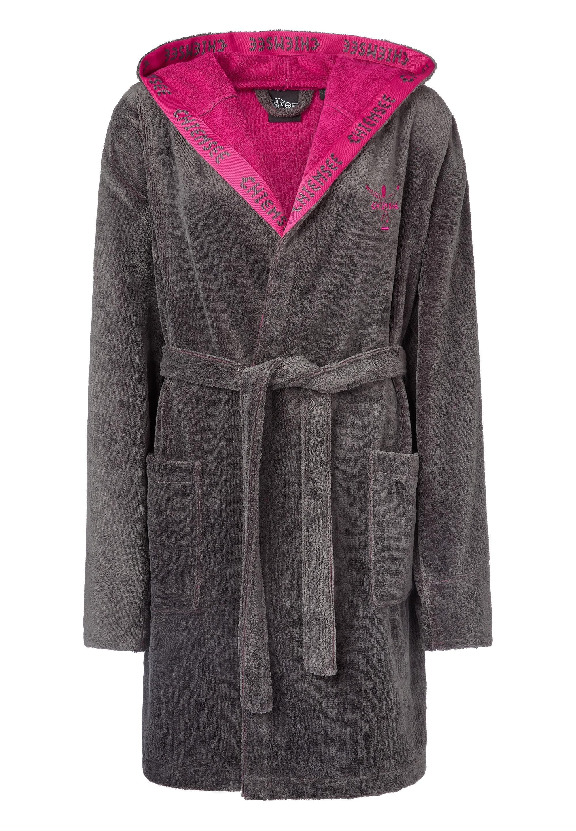 We love it. Diesen bequemen Bademantel im Bicolor-Look wirst du zweifelsohne lieben. Mit einem aufwendig verarbeiteten Kragen mit Chiemsee-Markenschriftzug und der kuschelweichen Kapuze ist uns ein echter Hingucker gelungen, der nicht nur schön aussieht, sondern auch richtig was kann. Dank der angenehmen Baumwollmischung schmeichelt er deiner Haut und verleiht dir ein angenehmes Tragegefühl, wie kaum ein anderer Bademantel. Während seine Innenseite aus saugstarkem Frottier für dich gefertigt wurde, besticht seine Außenseite mit megaweichem, flauschigen Velours. Perfekt zum Ankuscheln. Der Schnitt dieses knielangen Bademantels ist locker und sportlich. Zwei seitliche Eingrifftaschen und ein Gürtel vollenden das Schmuckstück. Wir stellen hohe Anforderungen an die Qualität unserer Stoffe und Materialien. Deshalb ist Nazare nicht nur strapazierfähig, sonderen auch absolut schadstofffrei hergestellt.
