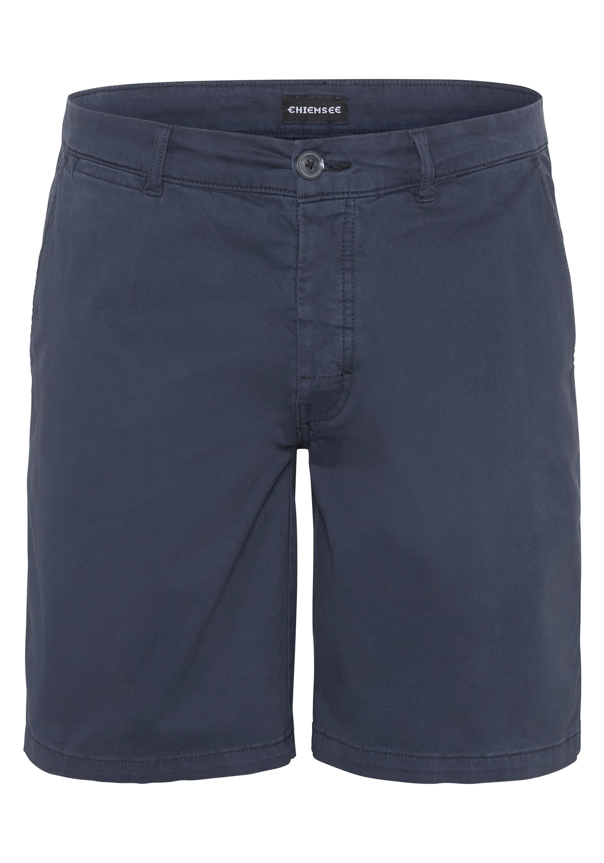 Entspannter Freizeit-Style: Mit der einfarbigen Chino-Shorts von CHIEMSEE sind sommerlicher Alltag und Urlaub style-technisch perfekt abgedeckt. Denn Schnitt und Optik machen immer einen stilvoll-legeren Eindruck, während sich der Komfort auf dem einen oder anderen Trip bewährt. Ihr herausragendes Merkmal ist das klassische Chino-Design zum Krempeln. Dazu gehören zwei seitliche Eingriffstaschen, zwei Gesäßtaschen und der Bund mit Knopf sowie Gürtelschlaufen.