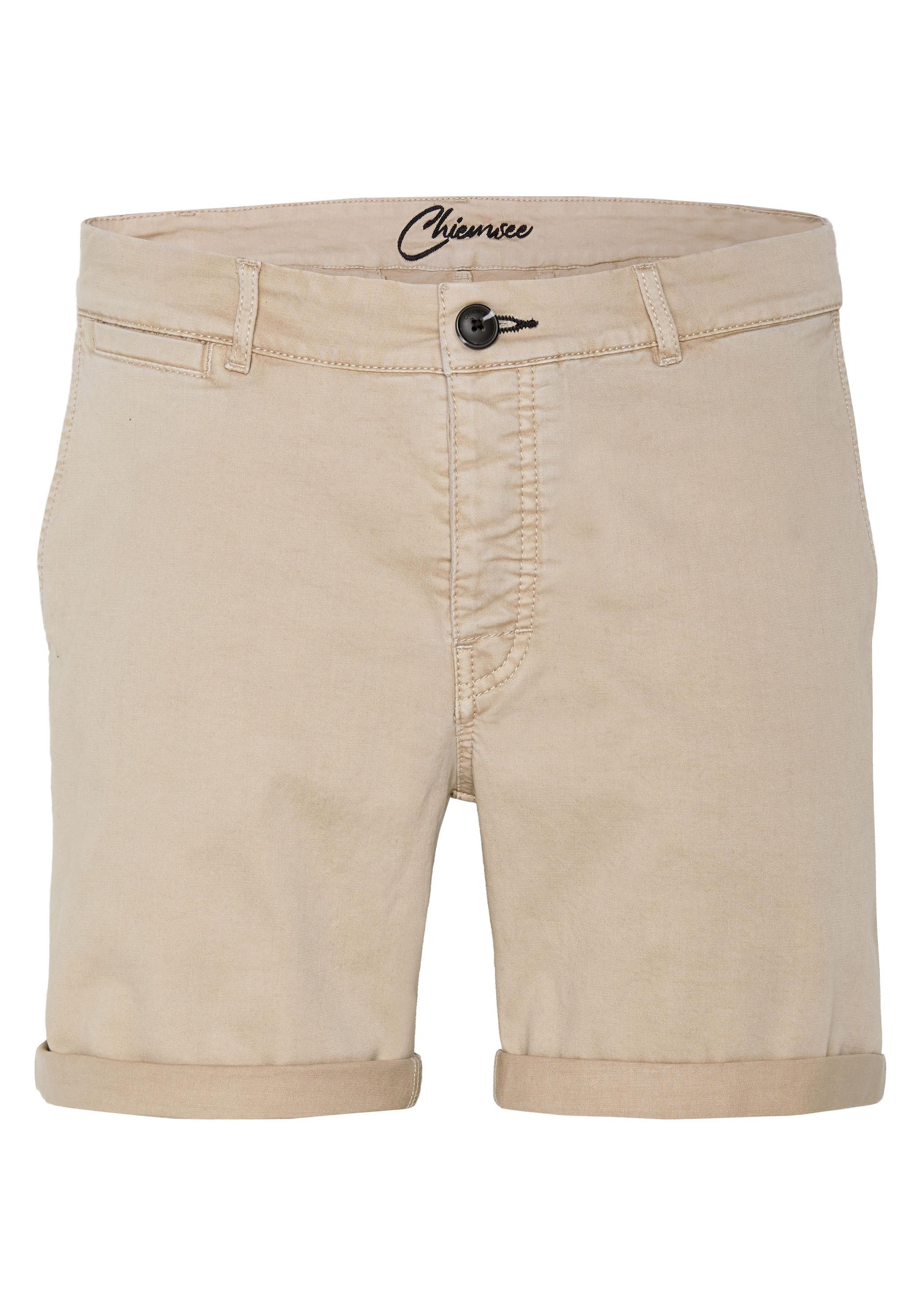 Entspannter Freizeit-Style: Mit der einfarbigen Chino-Shorts von CHIEMSEE sind sommerlicher Alltag und Urlaub style-technisch perfekt abgedeckt. Denn Schnitt und Optik machen immer einen stilvoll-legeren Eindruck, während sich der Komfort auf dem einen oder anderen Trip bewährt. Ihr herausragendes Merkmal ist das klassische Chino-Design zum Krempeln. Dazu gehören zwei seitliche Eingriffstaschen, zwei Gesäßtaschen und der Bund mit Knopf sowie Gürtelschlaufen.